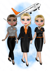 Instant digital download of our Flight Attendant in Black and Orange Character Bundle PNG (33 PNG’s)