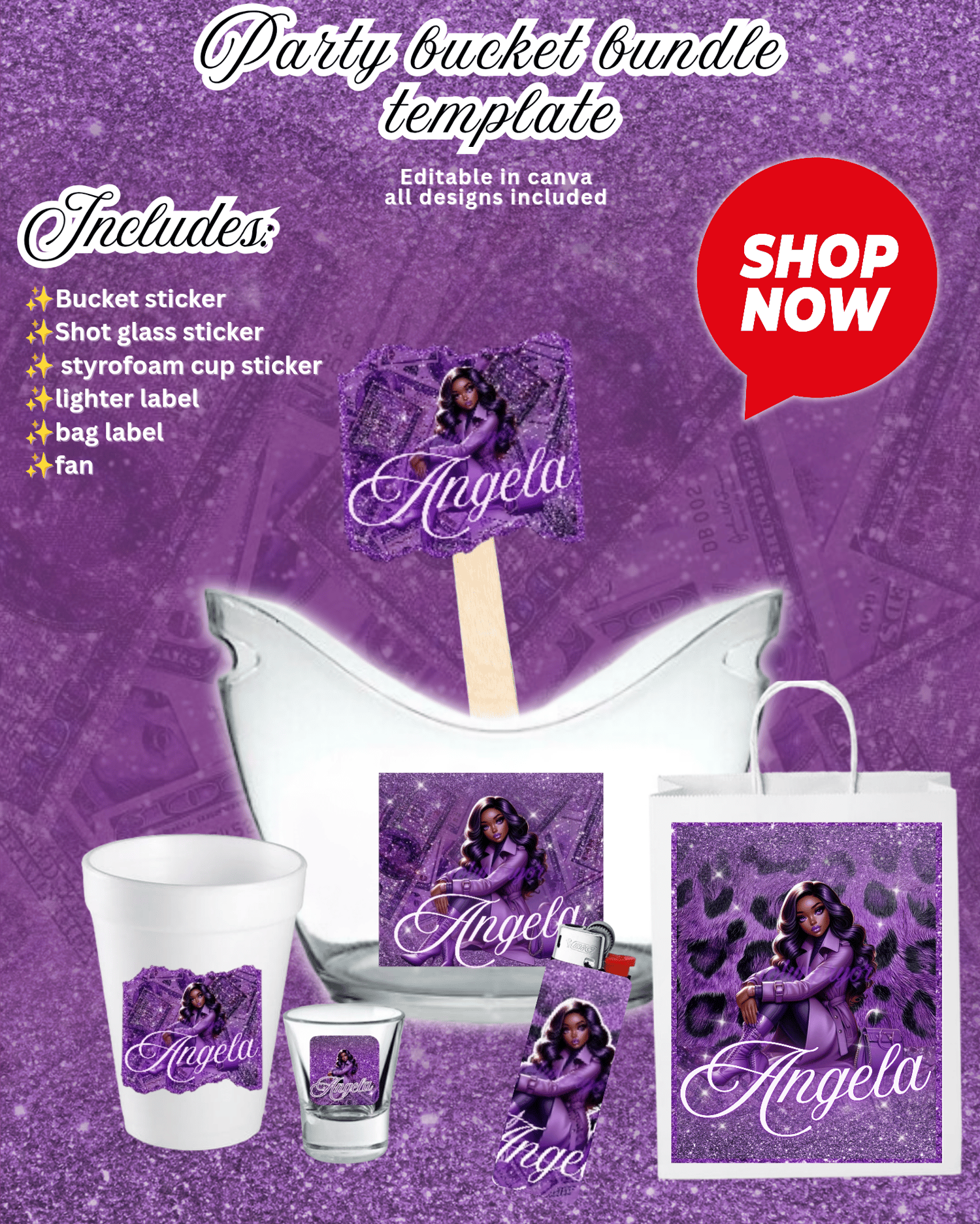 **Party Bucket Bundle Template | Editable Labels & Stickers** ππ»