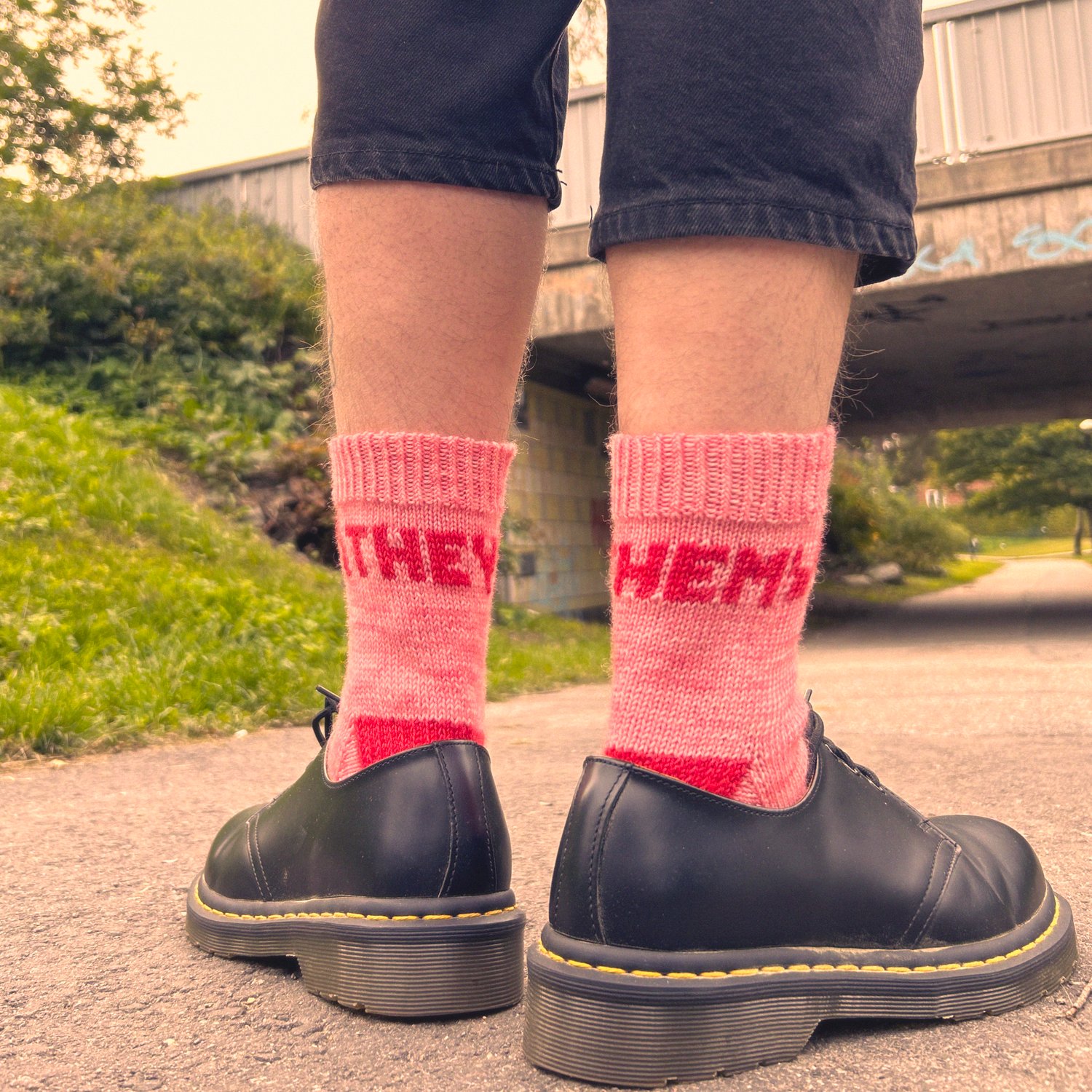 I designed Them Socks as I wanted a fun little sock to show my pronouns in a cute way. Wear them with shorts or cropped trousers to show off, but hey, I’m not your parental figure, style them how ever you want, as long as you feel cute!