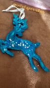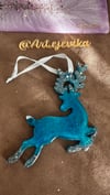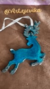 This unique Christmas ornament is handcrafted using the Petry Art technique. The deep turquoise color, smooth gradient transitions, and shimmering details create the impression of a deer coming to life in a winter fairy tale.