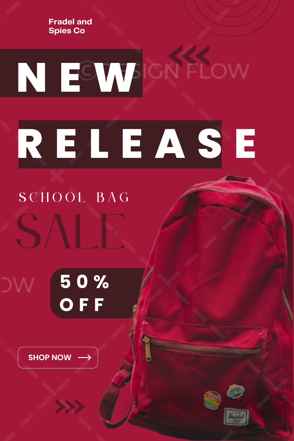 Promote your Back to School sales with this eye-catching Pinterest Pin Template tailored for school bag promotions. Designed to stand out in the Pinterest feed, this template helps you highlight discounts, collections, or seasonal offers with a clean and modern look.