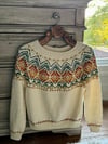 Magic Sunflowers is a stranded colorwork pullover that captures the warmth and charm of sunny fields. This design combines intricate sunflower motifs with a classic top-down, round yoke pullover silhouette, perfect for knitters who adore colorwork challenges and timeless elegance.