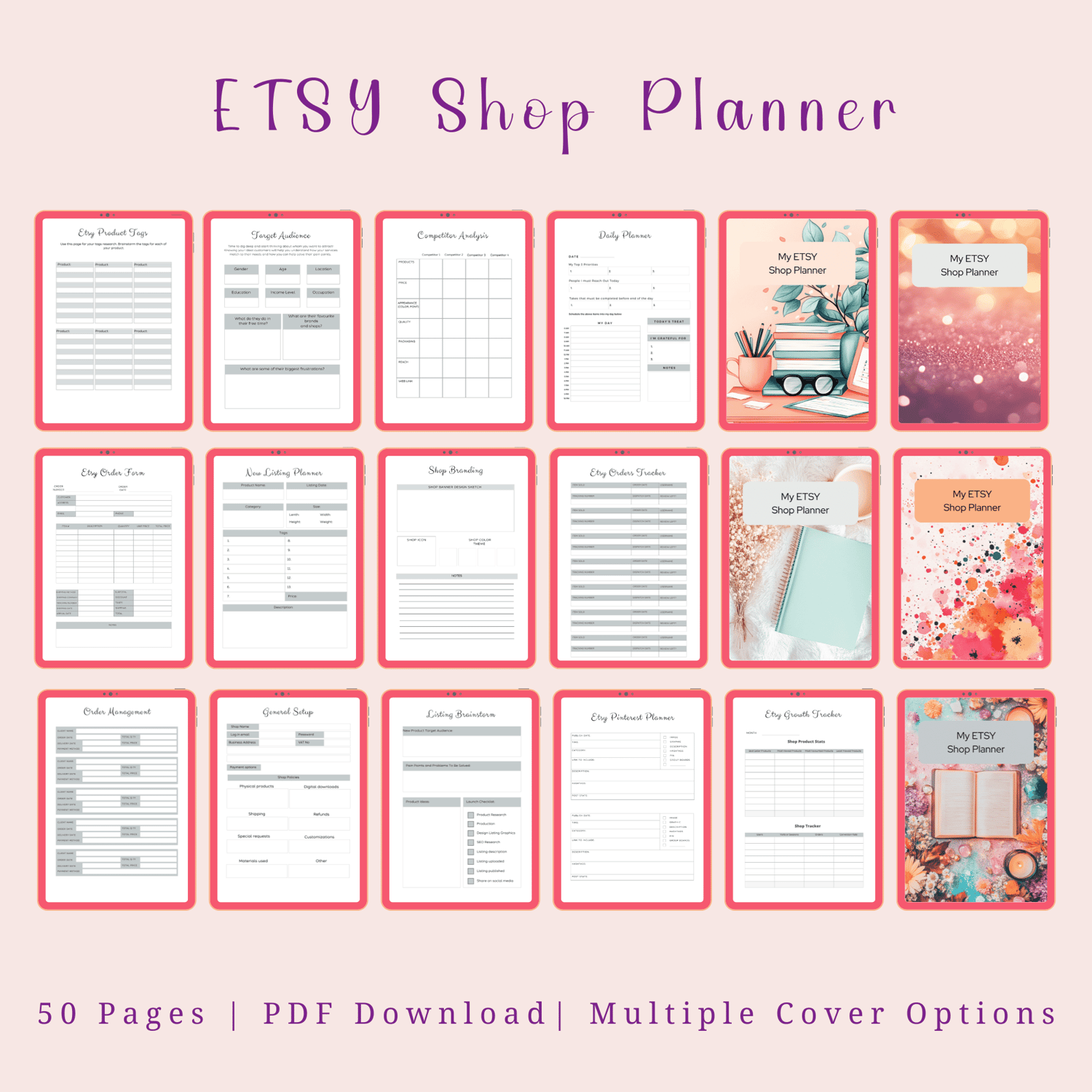 Printable Etsy Shop Planner – 50 Pages to Organize, Plan & Grow Your Shop | PDF for Personal Use