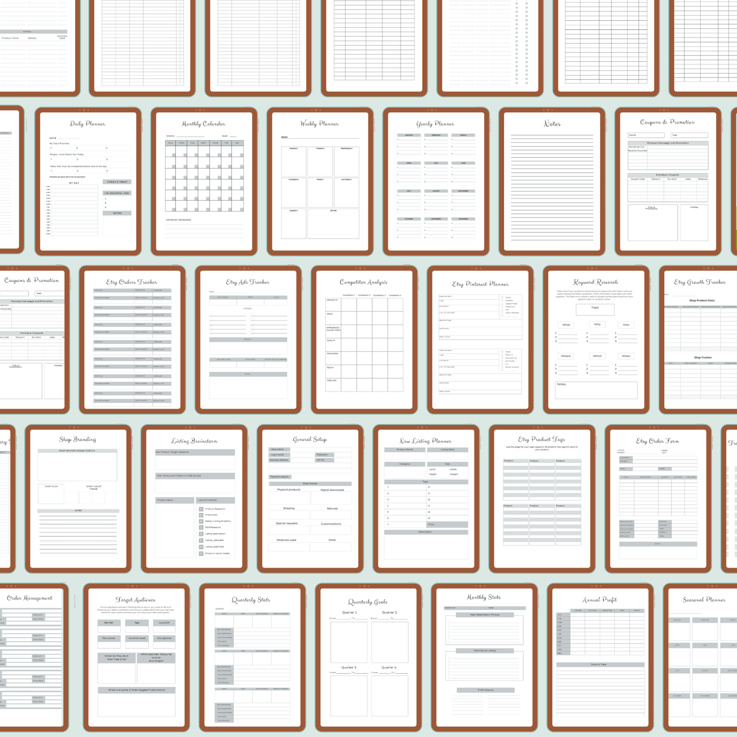 From order management and inventory tracking to keyword research and monthly goals - it’s all here in one easy-to-use printable PDF.