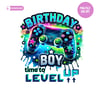 Birthday Boy Time To Level Up Sublimation PNG Digital Download Gamer Boy Shirt Design Kids Shirt PNG Gaming Birthday Shirt Colorful Neon PNG