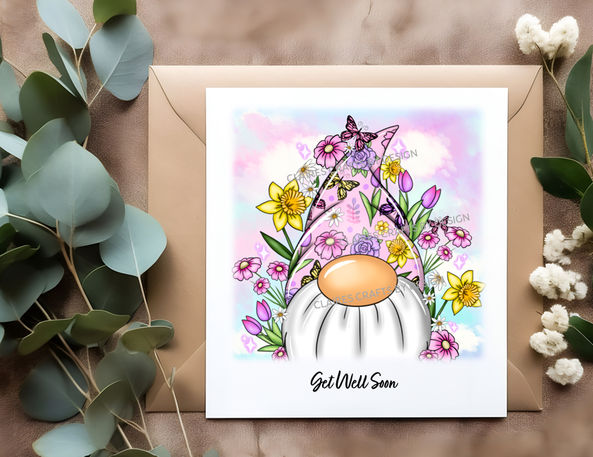 This cute gnome card is made just for you. It can be personalised for any occasion, the unique designs are designed upon order and therefore bespoke.