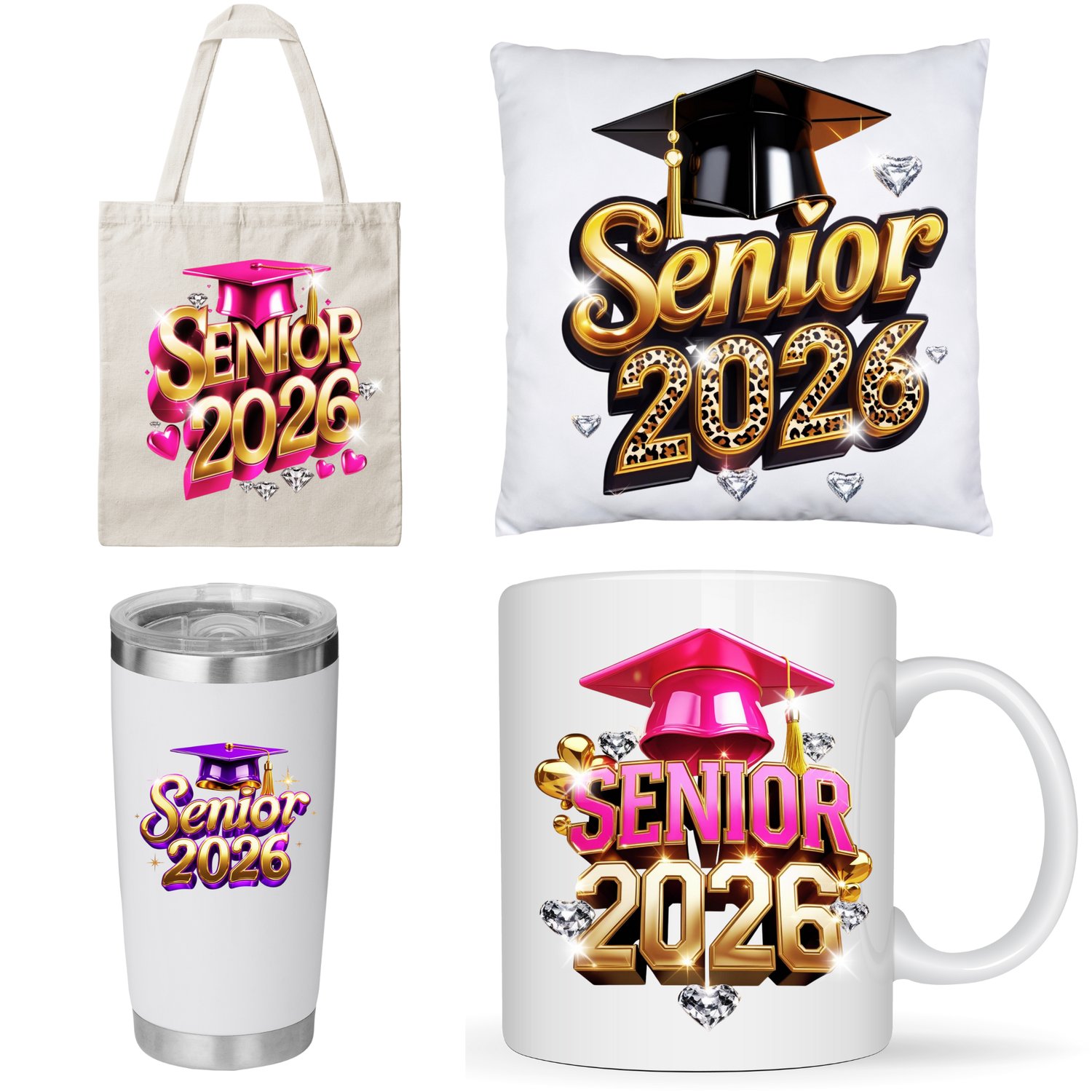 Celebrate your senior year with glam style using this Senior 2026 PNG 4-Design Bundle! Whether youβre a crafter, small business owner, or proud parent, this bundle gives you everything you need to create custom shirts, hoodies, tumblers, mugs, graduation stoles, banners, and more.