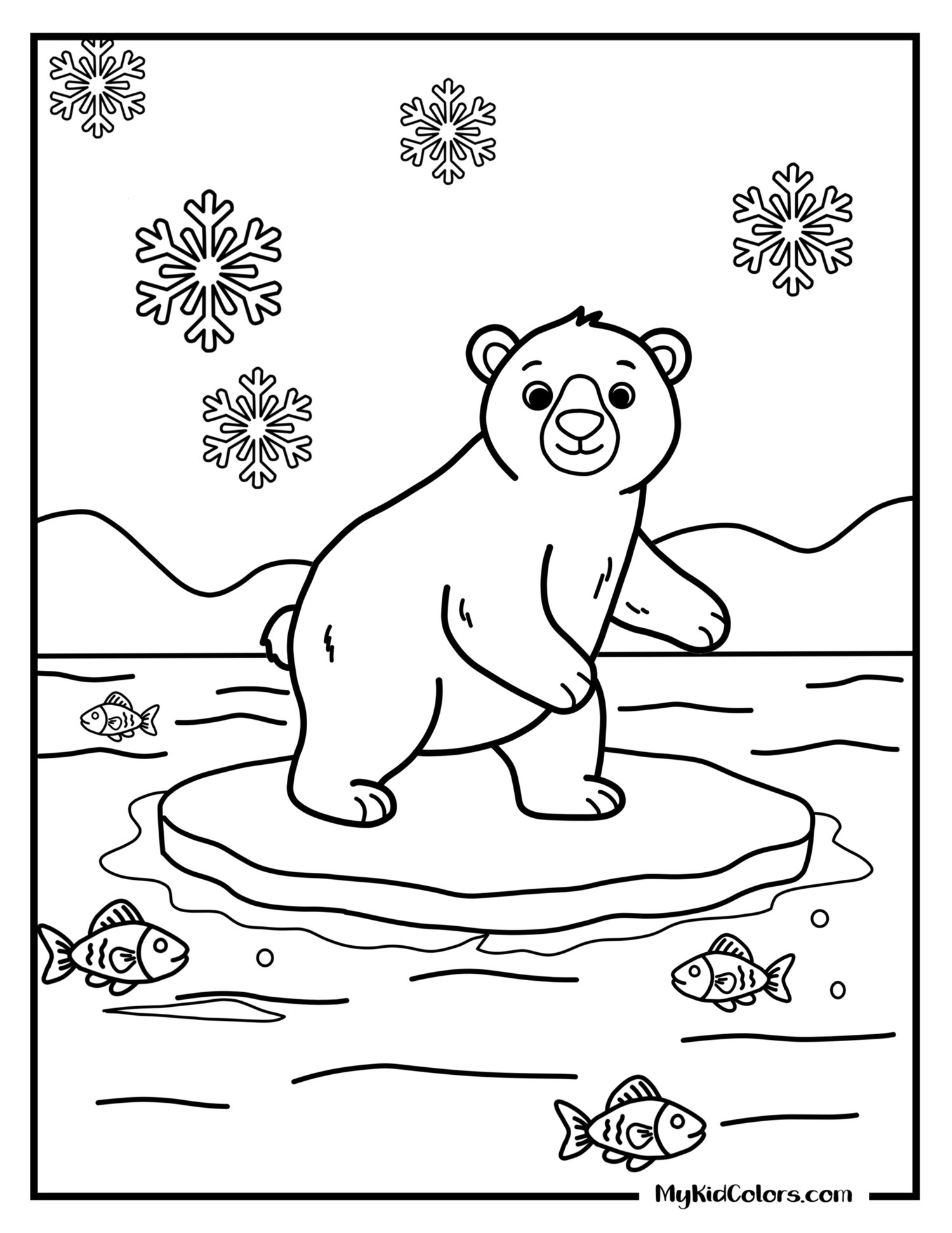 - Baby polar bears, bear fishing scenes, polar bear on ice illustrations