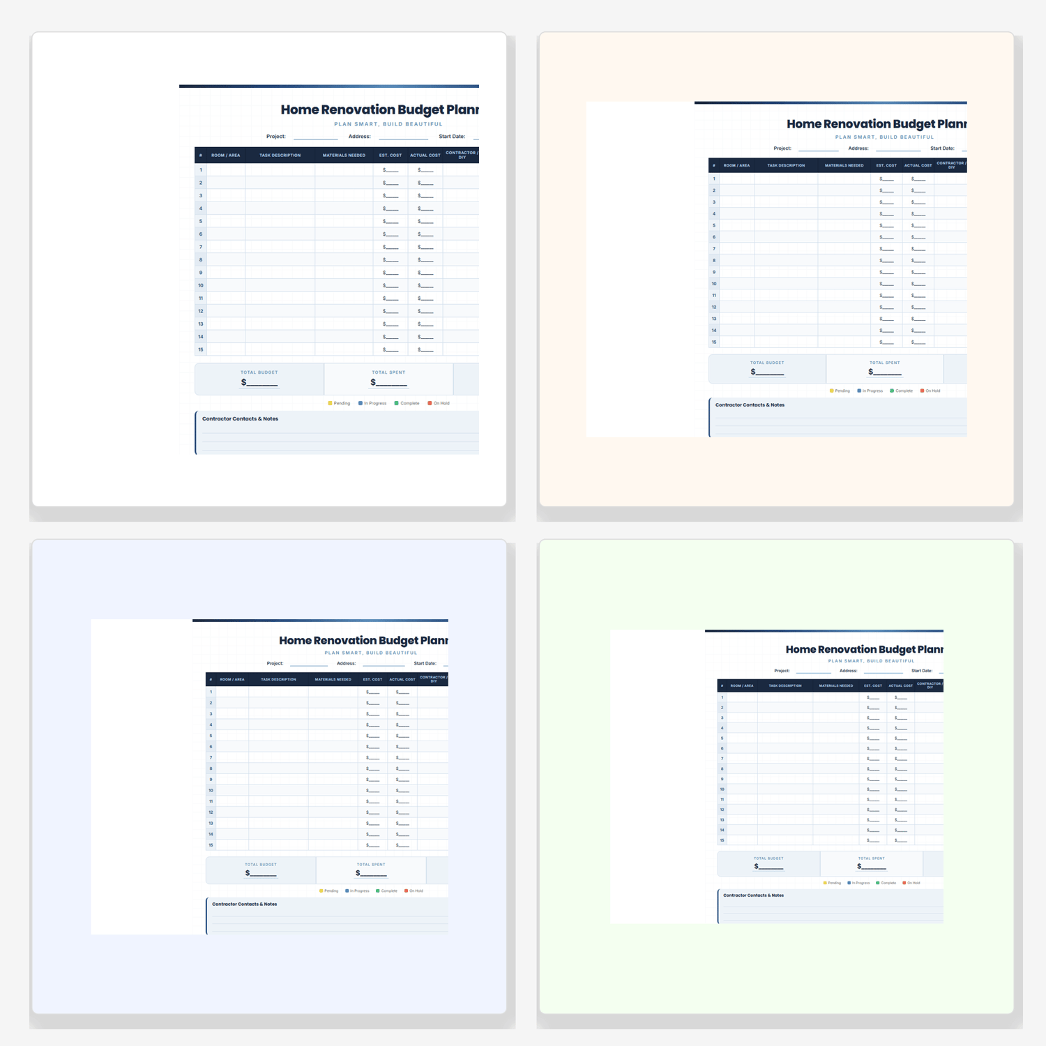Plan your home renovation with confidence. Track budgets, timelines, contractors, and materials room by room.