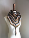 Cordillera is a triangular shawlette inspired by the 1999 song “Cordillera” by Argentinian rock band Los Enanitos Verdes. Cordillera uses Old Shale, a traditional Shetland lace similar to Feather and Fan. Yarn is carried along the sides of the work to minimize the amount of ends to weave in. Tassels and stripes add an elegant but bohemian look to the piece. This pattern would be an excellent way to showcase some handspun yarn, especially when paired with a simply spun yarn.