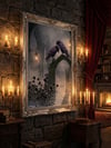 „Winter Ravens“ ist ein atmosphärisches Dark-Fantasy-Artwork, das die stille Melancholie gefrorener Ruinen einfängt. Zwei tiefviolette Raben sitzen auf einem alten Steinbogen, Laternen schweben im Nebel, und schwarze Rosen verblassen im Schnee. Die Kombination aus Frost, Schatten und sanftem Licht erschafft eine ruhige, aber kraftvolle Winterstimmung voller Symbolik.