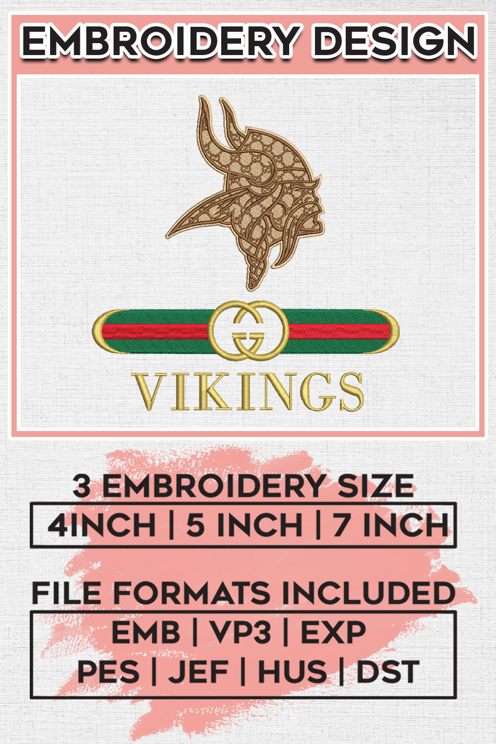 Guc.ci Minnesota Vikings Logo Embroidery Design Files, NFL Vikings, NFL Logo Embroidery Files, NFL Minnesota Vikings Machine Embroidery Design, Digital Downlo
