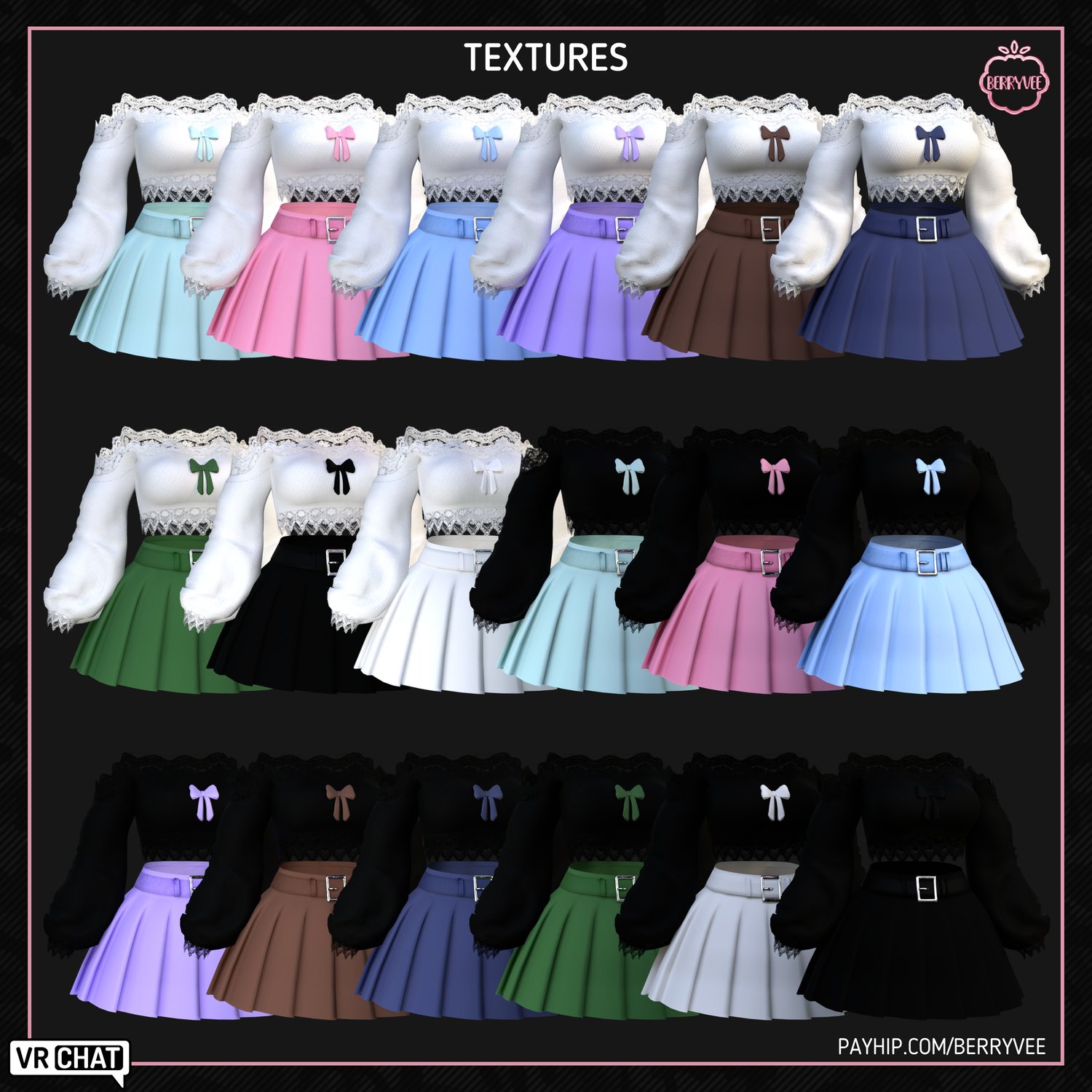 🍓Textures: 18 base colors for blouse, 9 base colors for skirt