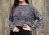 Transcend is a beautifully lightweight, voluminous sweater. Knit up with a single strand of Alpaca Suri Silk yarn, this garment offers an airy yet cosy garment with an all-over eyelet lace pattern. On a darker colourway, as in the sample, the eyelet lace creates a subtle texture, whilst on a lighter colourway the lacework is more obvious.