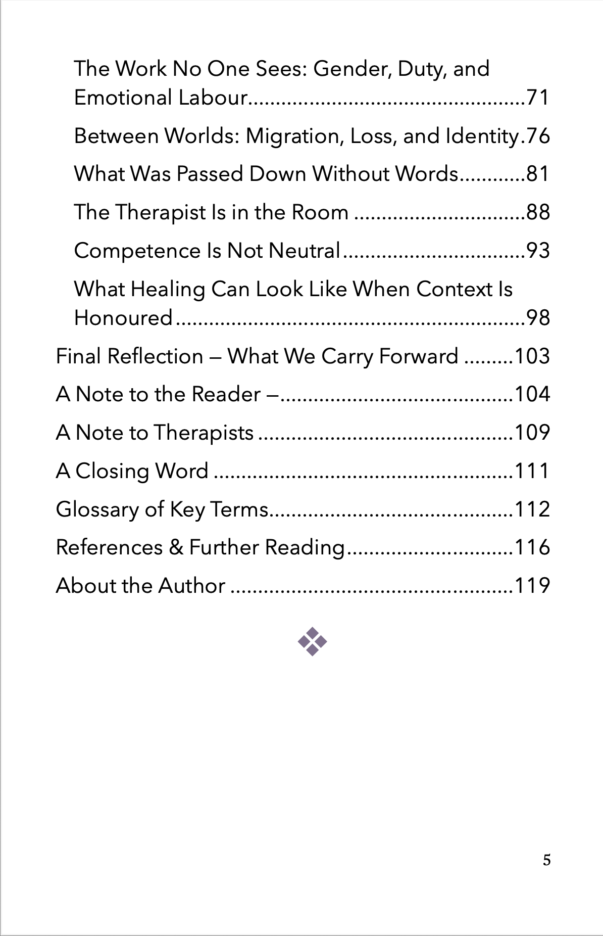 This is a book for readers who want language for experiences they have carried quietly, and reassurance that healing does not require self-erasure. It is also a book for therapists, coaches, and care-givers who want to practise with greater attentiveness, ethical responsibility, and respect for the worlds people come from.