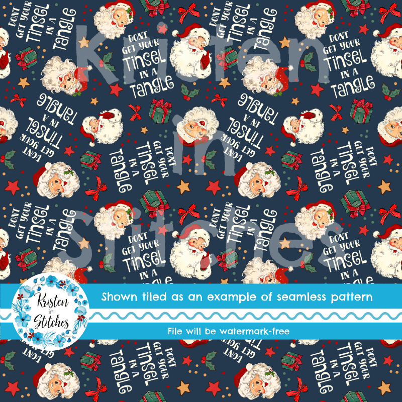 Don't Get Your Tinsel in a Tangle Sarcastic Christmas Santa Seamless Pattern