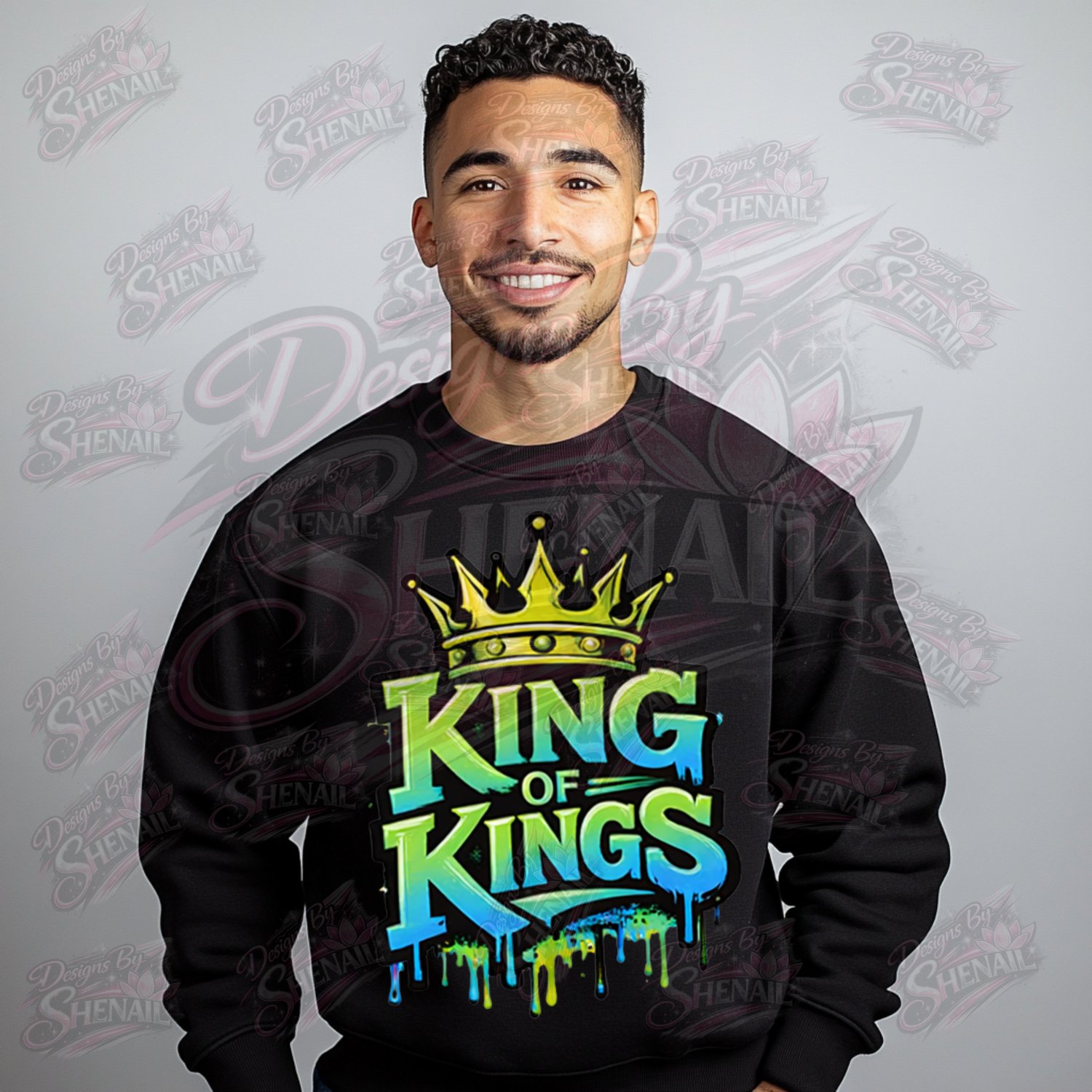 Celebrate bold faith and royalty with this vibrant “King of Kings” PNG design! Featuring a striking dripping graffiti-style crown and text, this high-resolution file is perfect for crafting standout apparel, tumblers, and more.