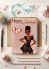 Elegant Black Woman Birthday Card | Chic Digital Download for Her | Afro-Centric Printable Happy Birthday eCard
