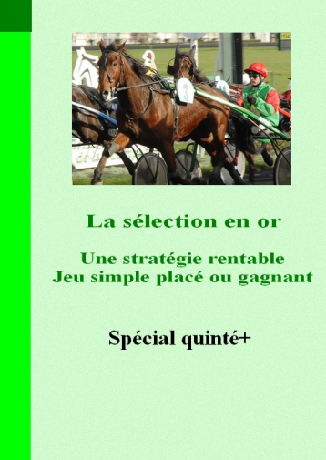 Une méthode de sélection qu’il faut avoir entre les mains simple et originale qui permet de détecter un ou plusieurs chevaux dans les courses du quinté. Ces chevaux peuvent être joués au jeu simple placé ou gagnant. Ils sont joués dans les courses du quinté quelque soit la discipline Le trot, plat ou l’obstacle. La technique de sélection est très simple il suffit du journal paris turf Et grâce à 2 critères pour rechercher les chevaux à jouer. Ils vous permettront en un coup d’œil de gérer les écarts, de construire vos systèmes de jeux de savoir comment jouer et à bon escient et surtout d’encaisser de l’ARGENT.