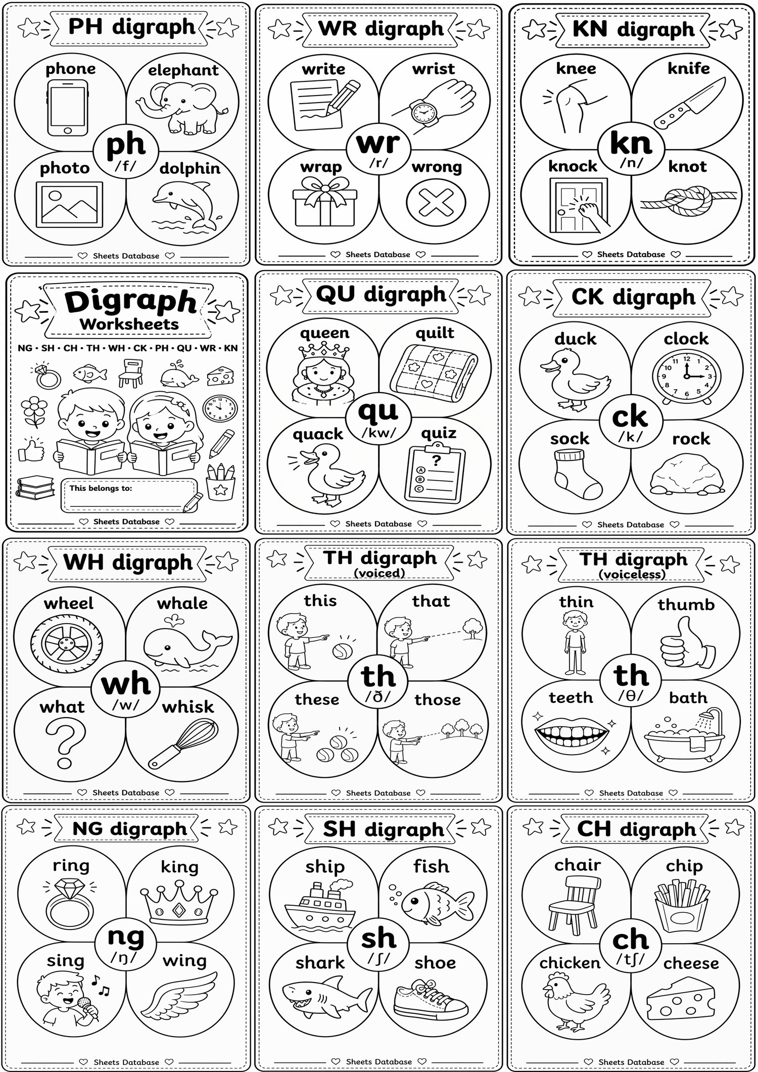 This printable pack includes clear and visually simple phonics charts designed to help young learners recognize common digraph sounds and build vocabulary.