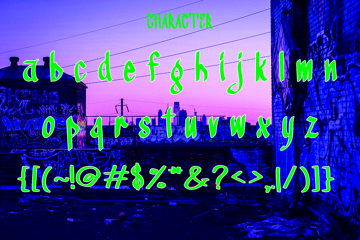 Introducing Fighter Blom, a font that embodies the raw energy and fearless spirit of hip hop culture, skateboarding, and streetwear fashion. Fighter Blom exudes an edgy and bold vibe with its sharp lines, aggressive angles, and rugged design, mirroring the tenacity and grit of the urban scene. This font is the perfect choice for branding in the realms of hip hop music, skateboarding culture, and trendy clothing lines, adding a punch of attitude to logos, album covers, apparel designs, and promotional material. Its distinctive style and rugged charm make it a standout choice for those seeking a font that speaks volumes about determination, resilience, and streetwise authenticity. Fighter Blom isn't just a font—it's a statement, a declaration of strength and style that resonates with the pulse of the streets and the beat of the culture it represents.
