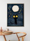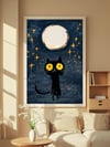Whimsical Black Cat Under Moonlight | Printable Wall Art | Magical Starry Night Decor | Instant Digital Download 2025 Trend