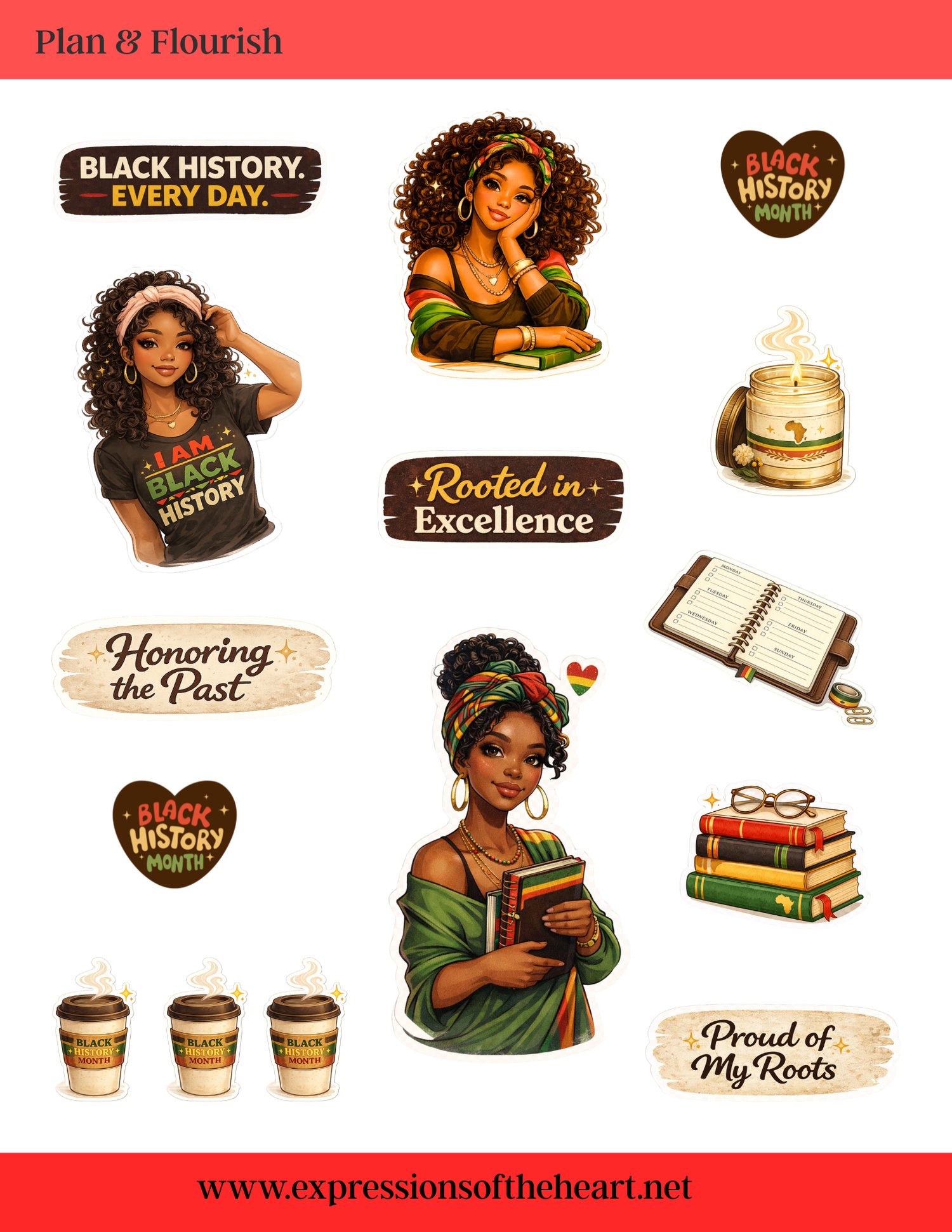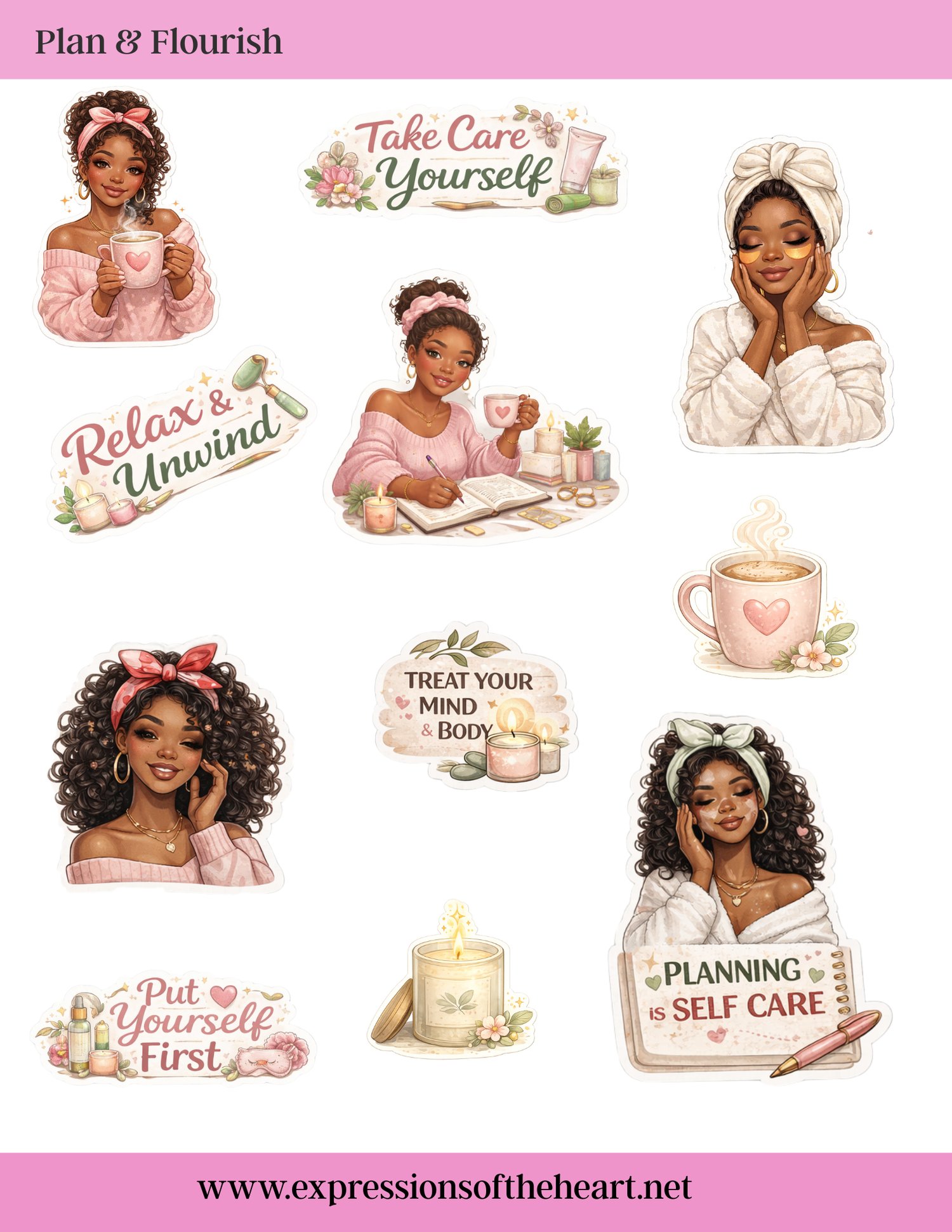 Paired with festive quotes and decorative elements designed to bring joy, confidence and celebration to your planner or journal. Each sticker is thoughtfully designed to reflect self-love, celebration and representation.