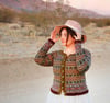 This is a pattern for a top down knit cardigan with a circular yoke. The cardigan is worked in the round with a bit of short row shaping at the neck, a steek, and using the stranded colourwork technique. You may knit Eucryphia in a 6 colour (my sample seen in images) or 4 colour (see my Eucryphia jumper sample) palette.