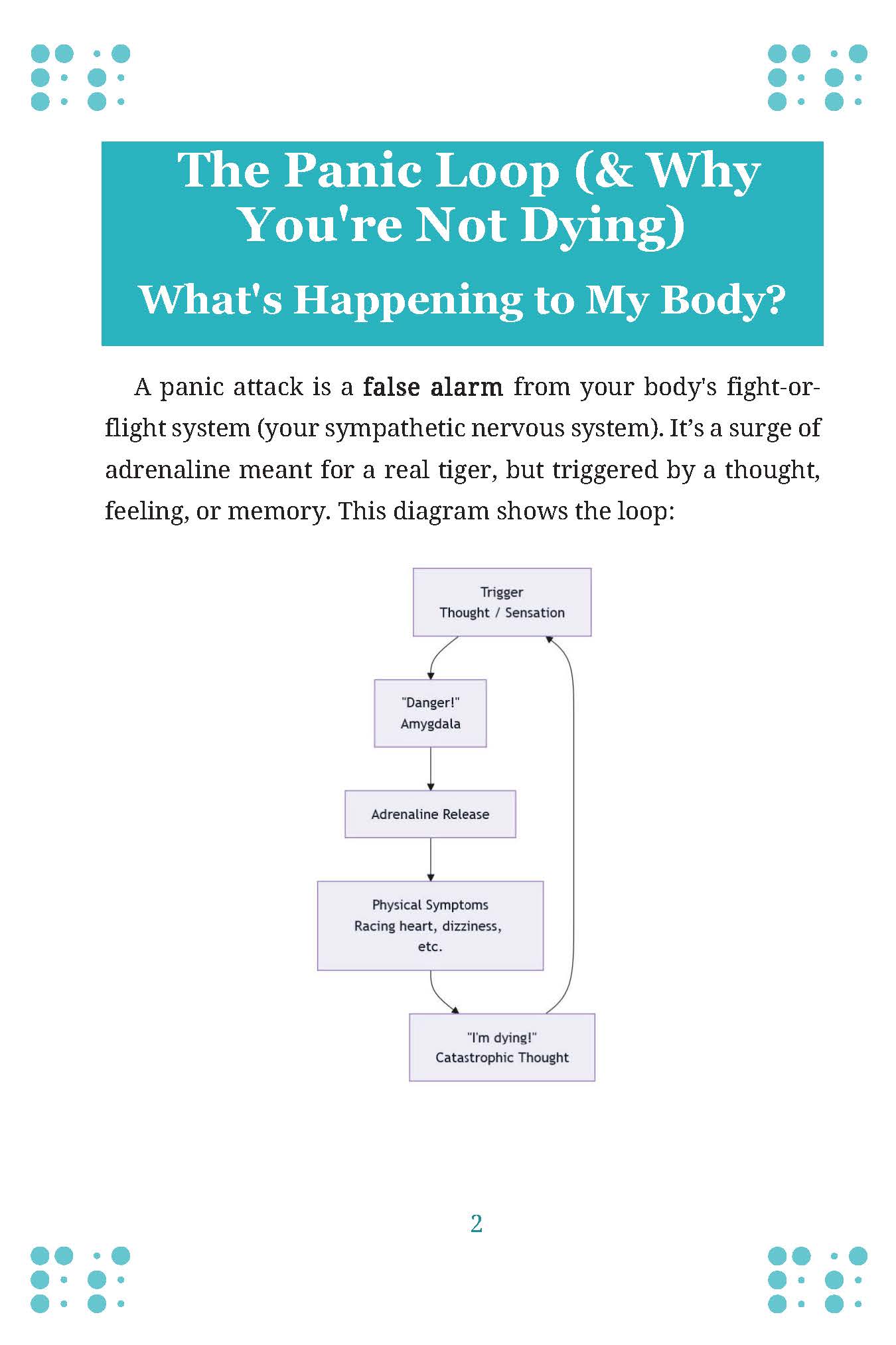 - The Panic Loop Explained: A visual diagram that shows what's happening in your body (nervous system) and why you're not dying, just scared.