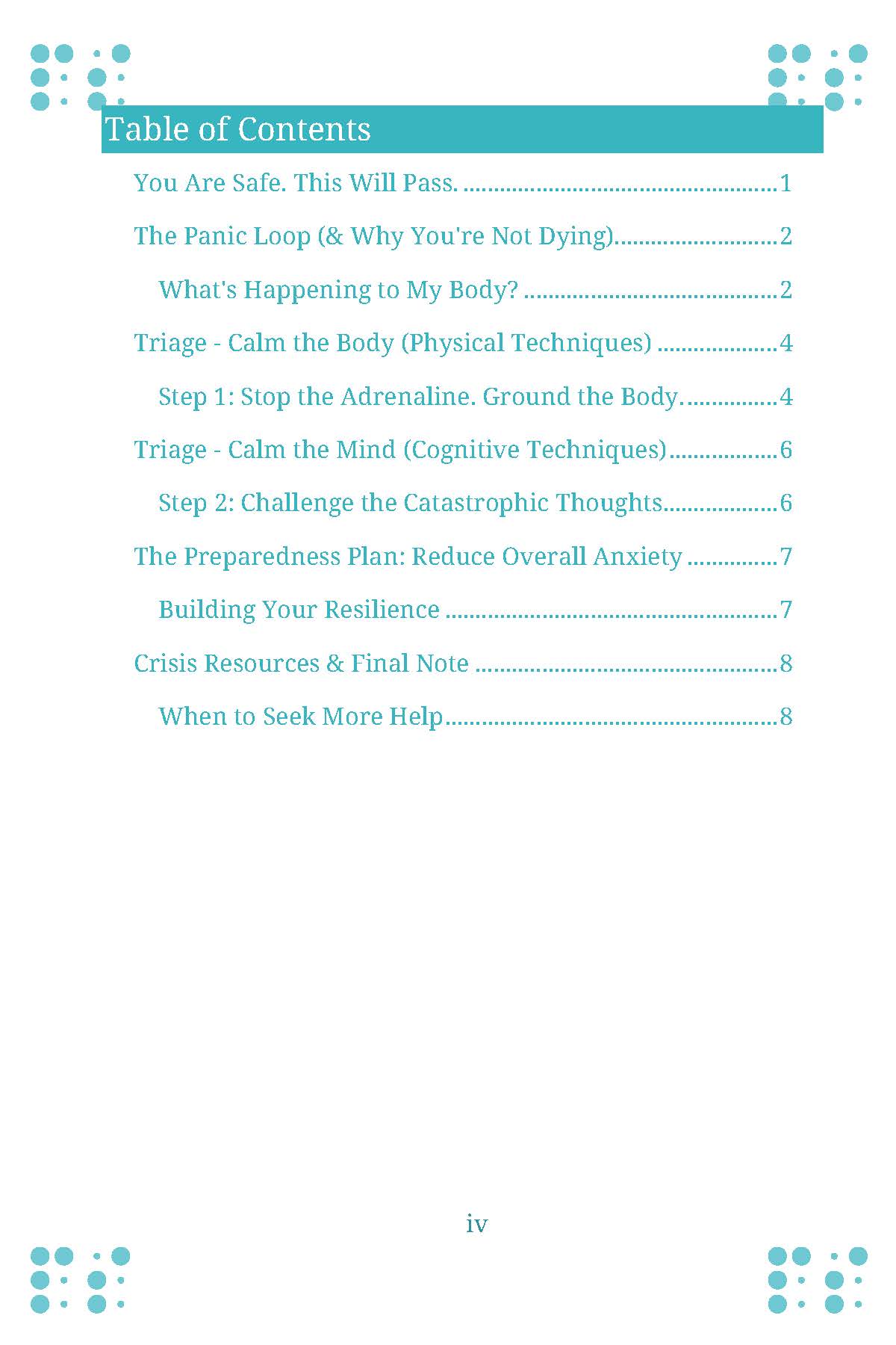 - The Preparedness Plan: A checklist of habits to reduce overall anxiety and build resilience, making attacks less frequent and intense.