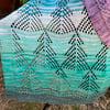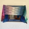 This wrap was originally designed as a Yarn Advent pattern for use with 25 x 10g mini-skeins that fade into each other. The pattern is written to use 2 x 100g / 425m skeins of sock or 4ply yarn, however notes on how to adapt the pattern for use with 10g or 20g mini-skeins are included.