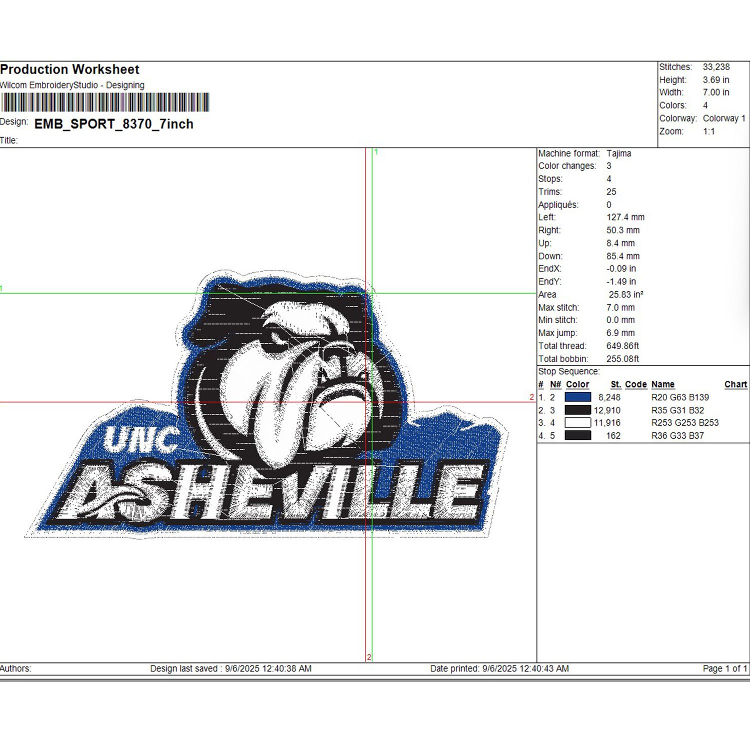 NCAA UNC Asheville Bulldogs Football Team Logo Embroidery Designs, Ncaa Embroidery Files, NCAA UNC Asheville Bulldogs Team Logo Embroidery, Game Day Machine Embroidery Design, Digital Download