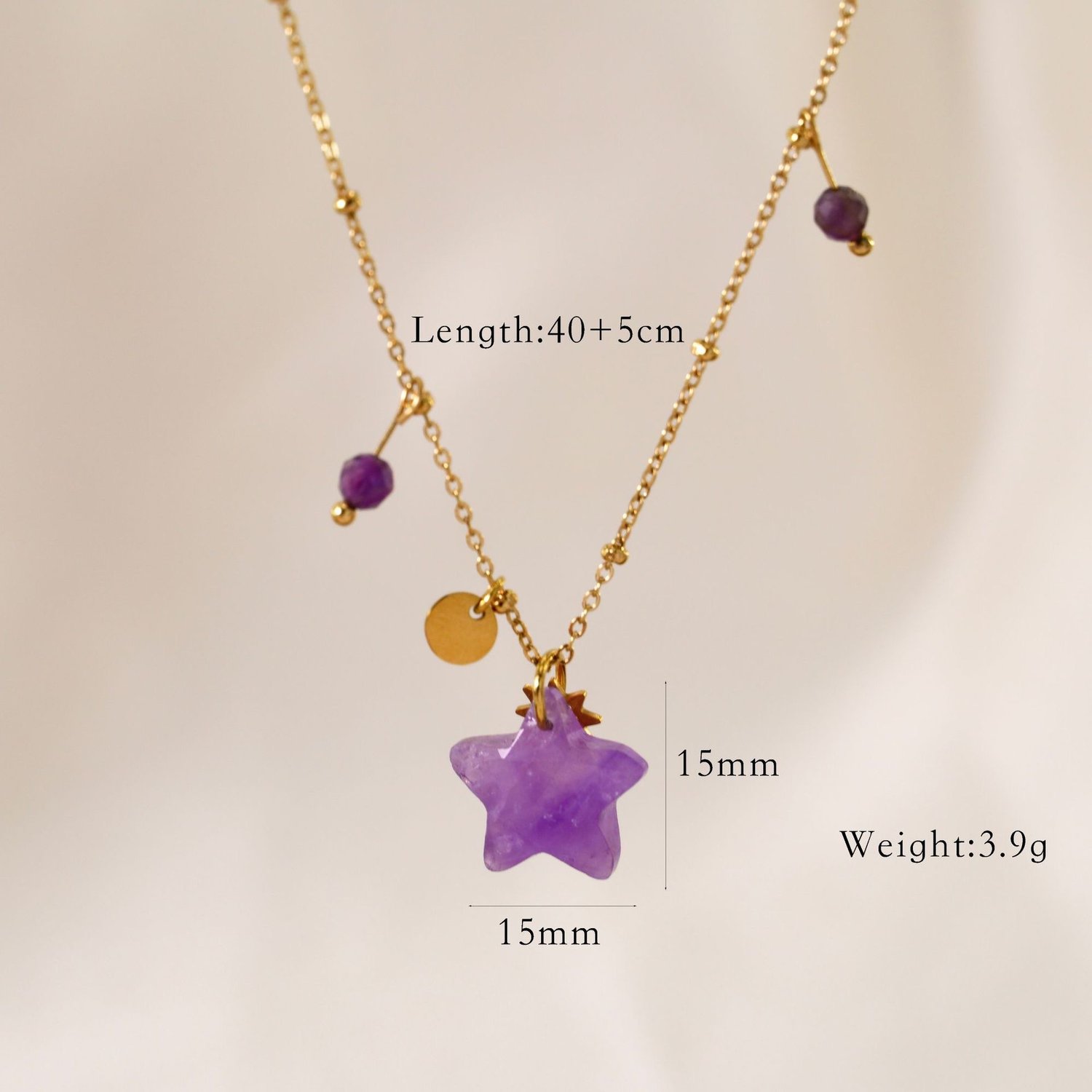 Designer luxury handcrafted white shell pearl purple natural stone star pendant stainless steel 14K gold layering necklace
