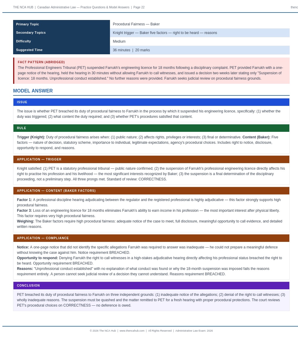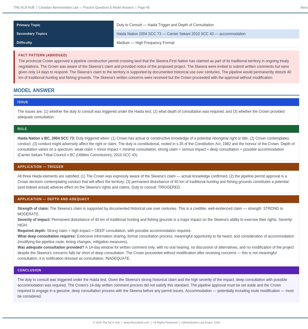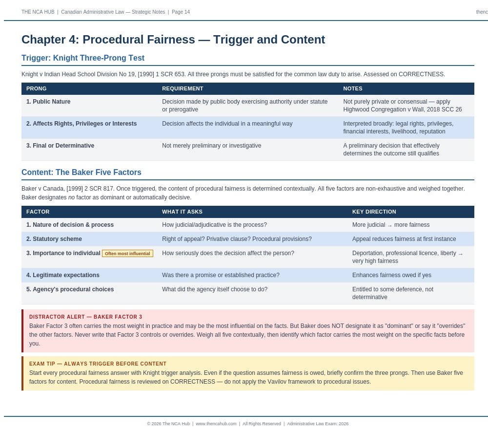 Fully aligned with the current NCA Administrative Law syllabus. Vavilov framework, SOCAN 2022 SCC 30, Carrier Sekani, and all current authorities included.