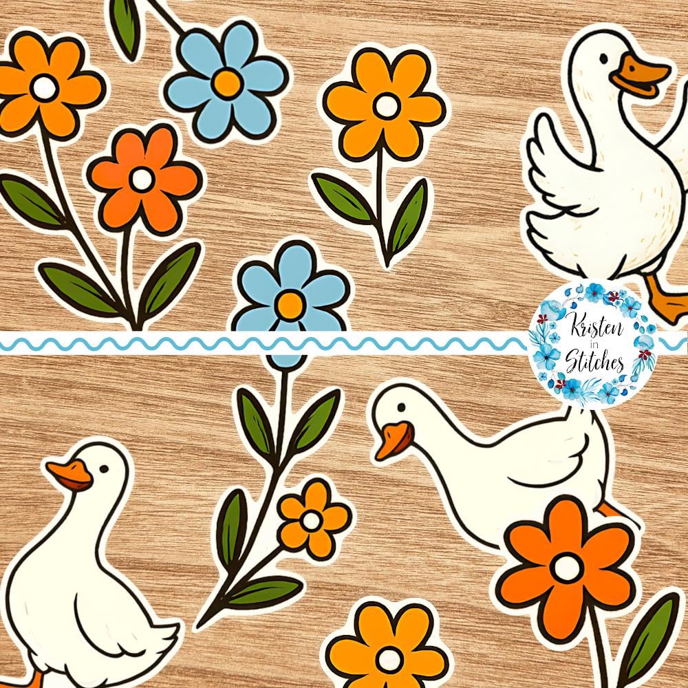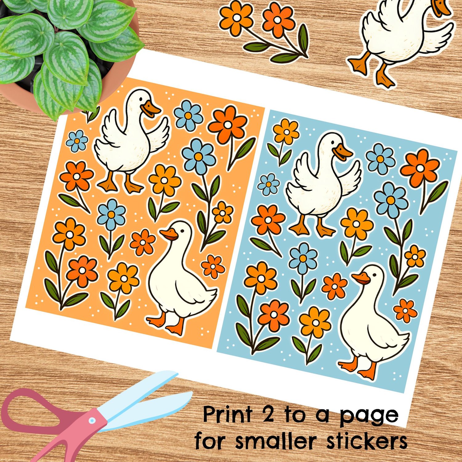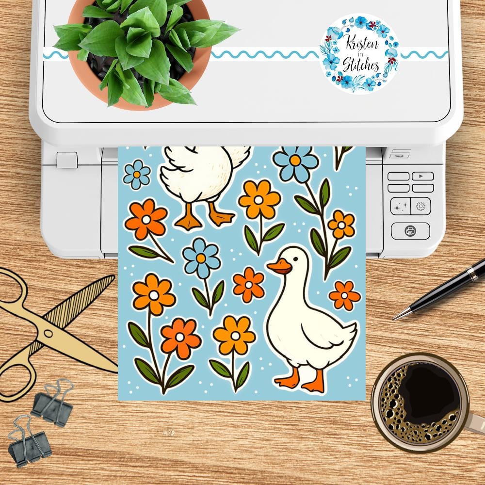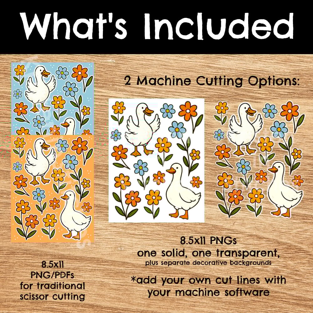 Silly Goose Printable Sticker Sheets, PDF PNG, DIY Print & Cut Paper Crafts, White Geese Flowers