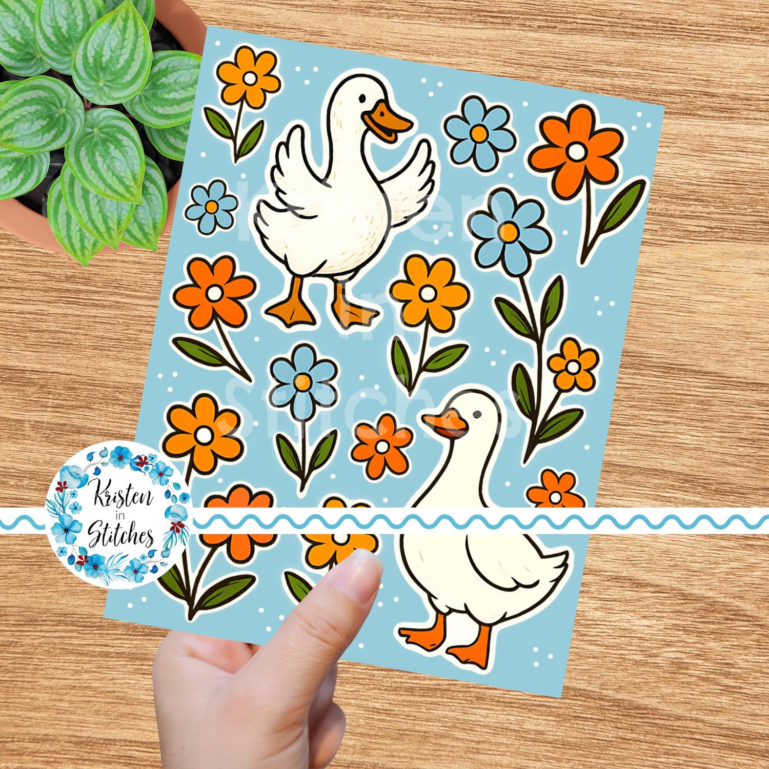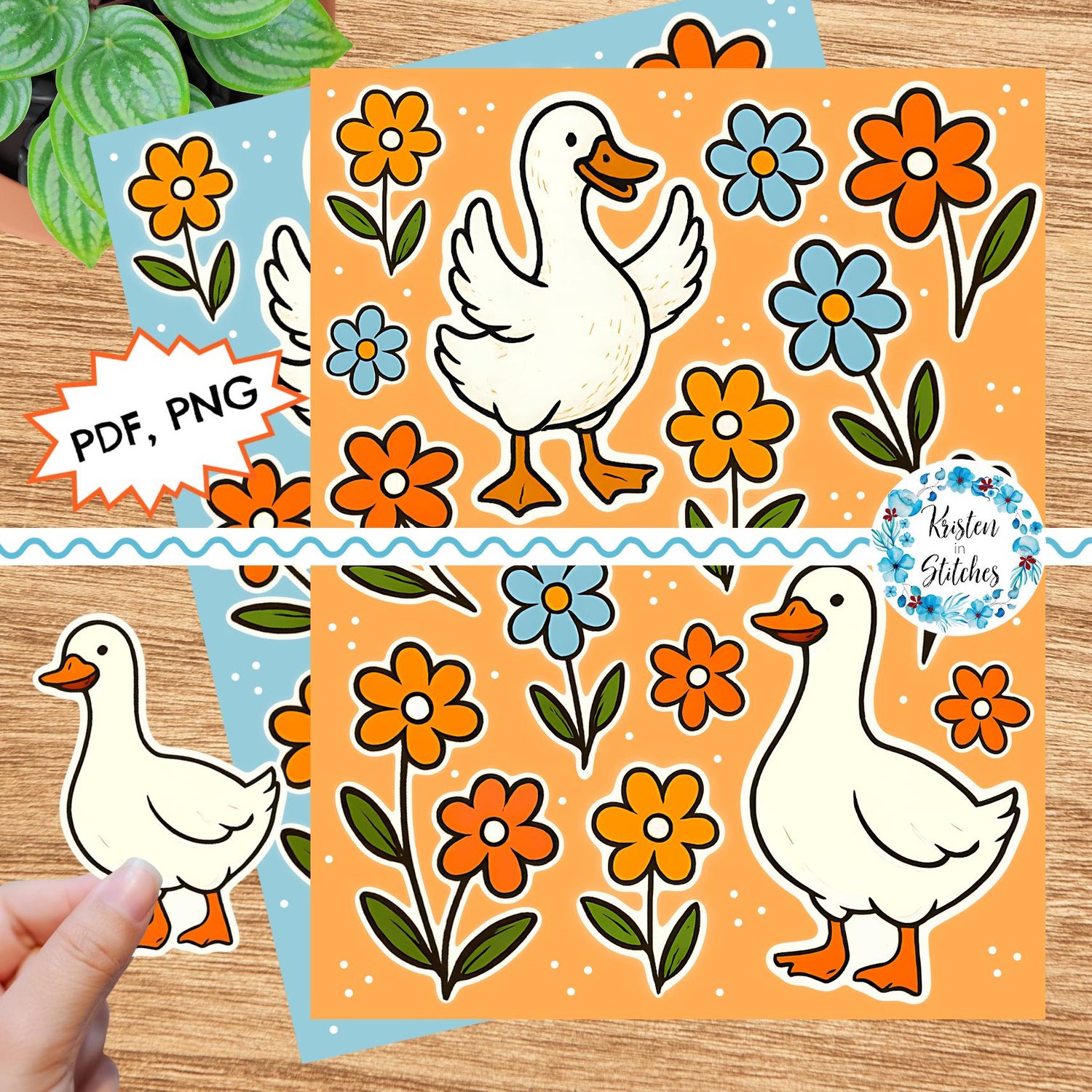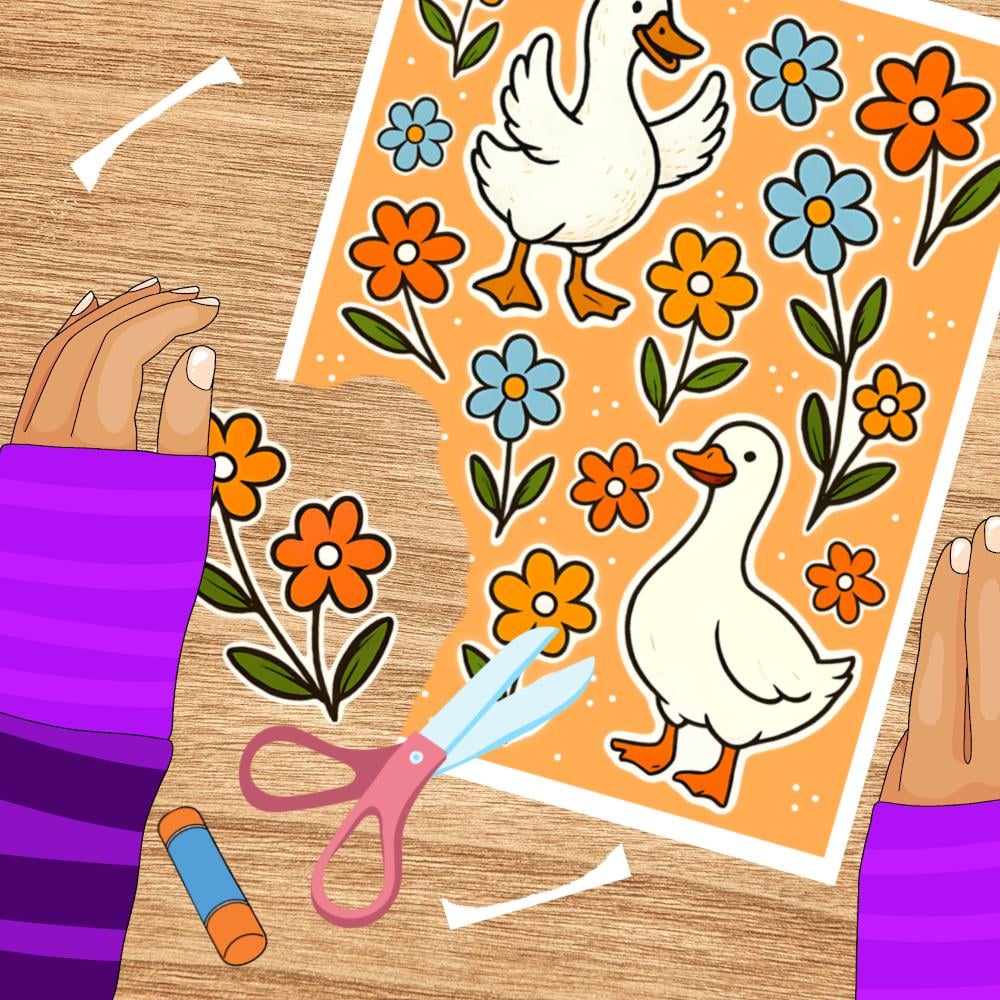 Silly Goose Printable Sticker Sheets, PDF PNG, DIY Print & Cut Paper Crafts, White Geese Flowers