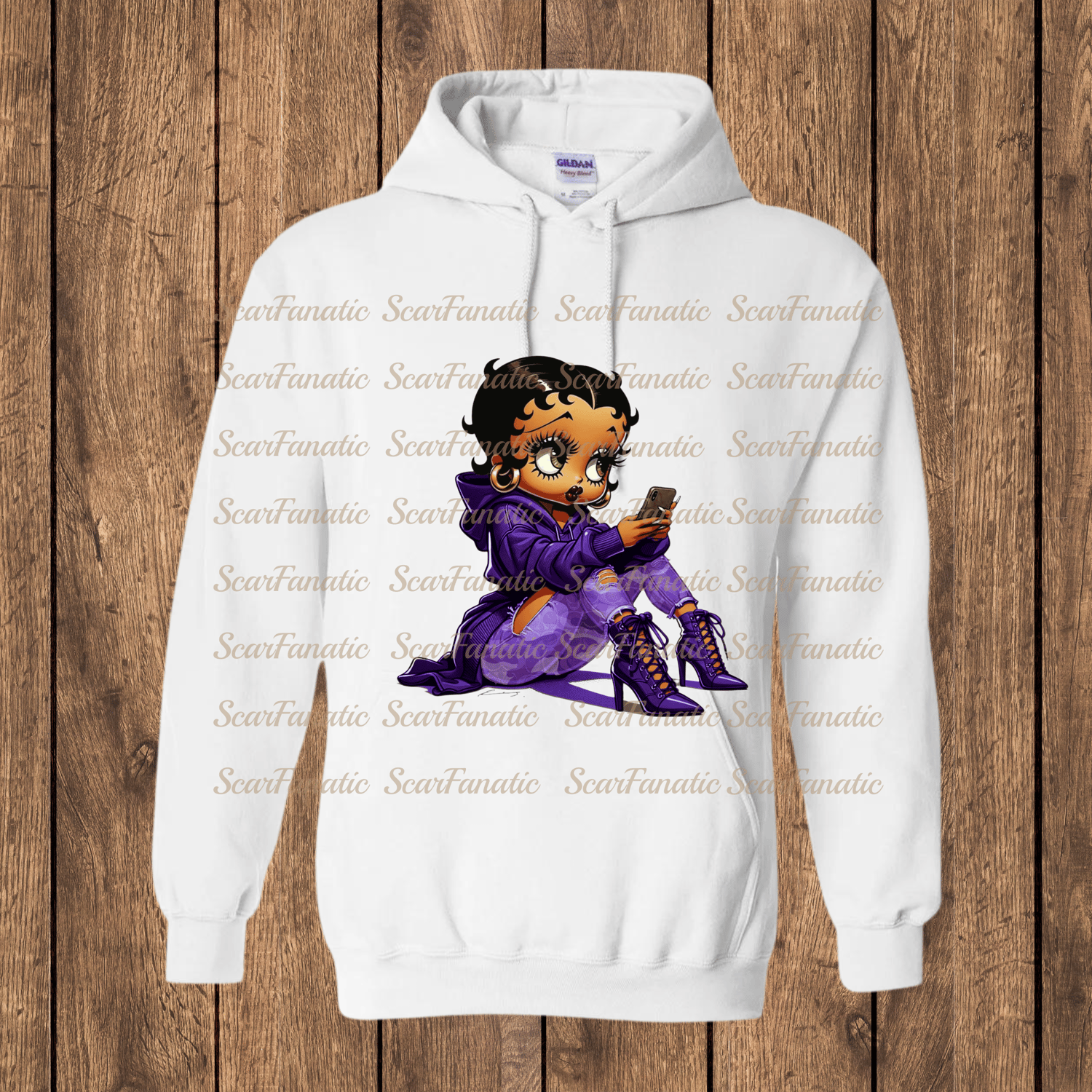 Purple Color Black Betty Boop with Purple Camo Cch pants Hooded Sweatshirt