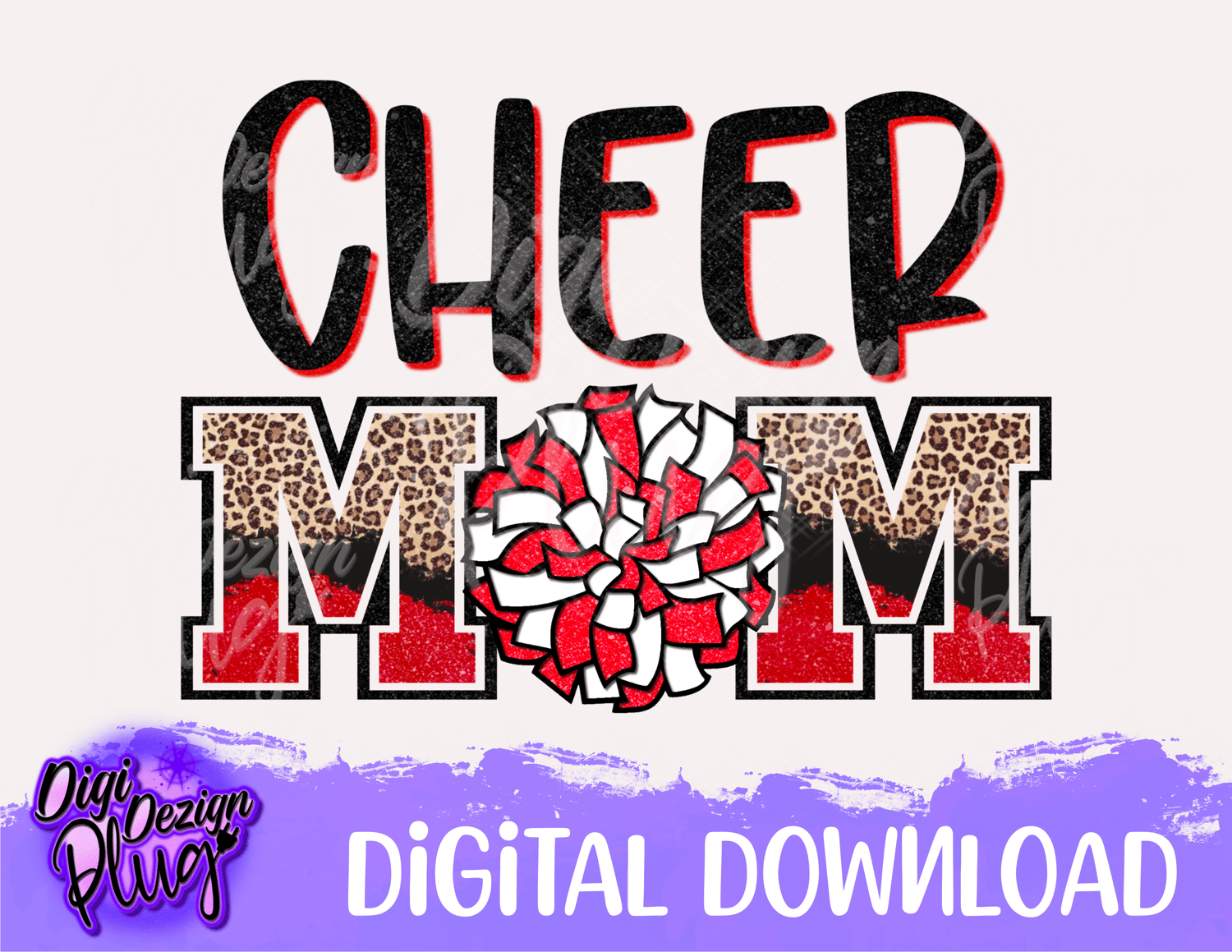 Cheer Mom Png- Red Cheer Mom Cheetah Print -Digital Download