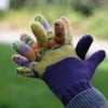 Choose a fingering weight or sock yarn with some wool content for warmth. Choose a solid colour and a self-patterning or variegated colourway. Alternatively, the gloves may be worked in one colour.