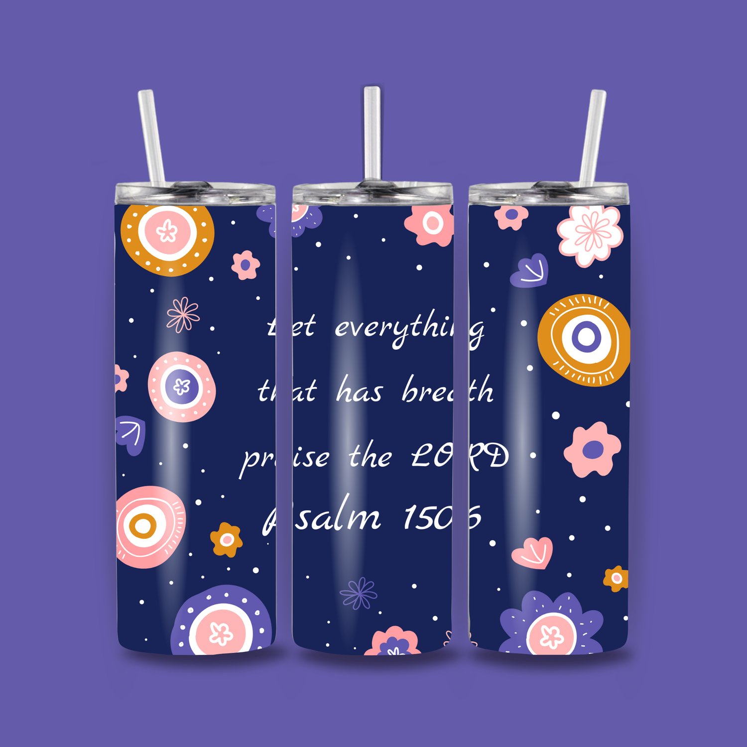 F16-Psalm 150:6 Floral Christian Tumbler – 20oz Skinny Stainless Steel Cup with Straw