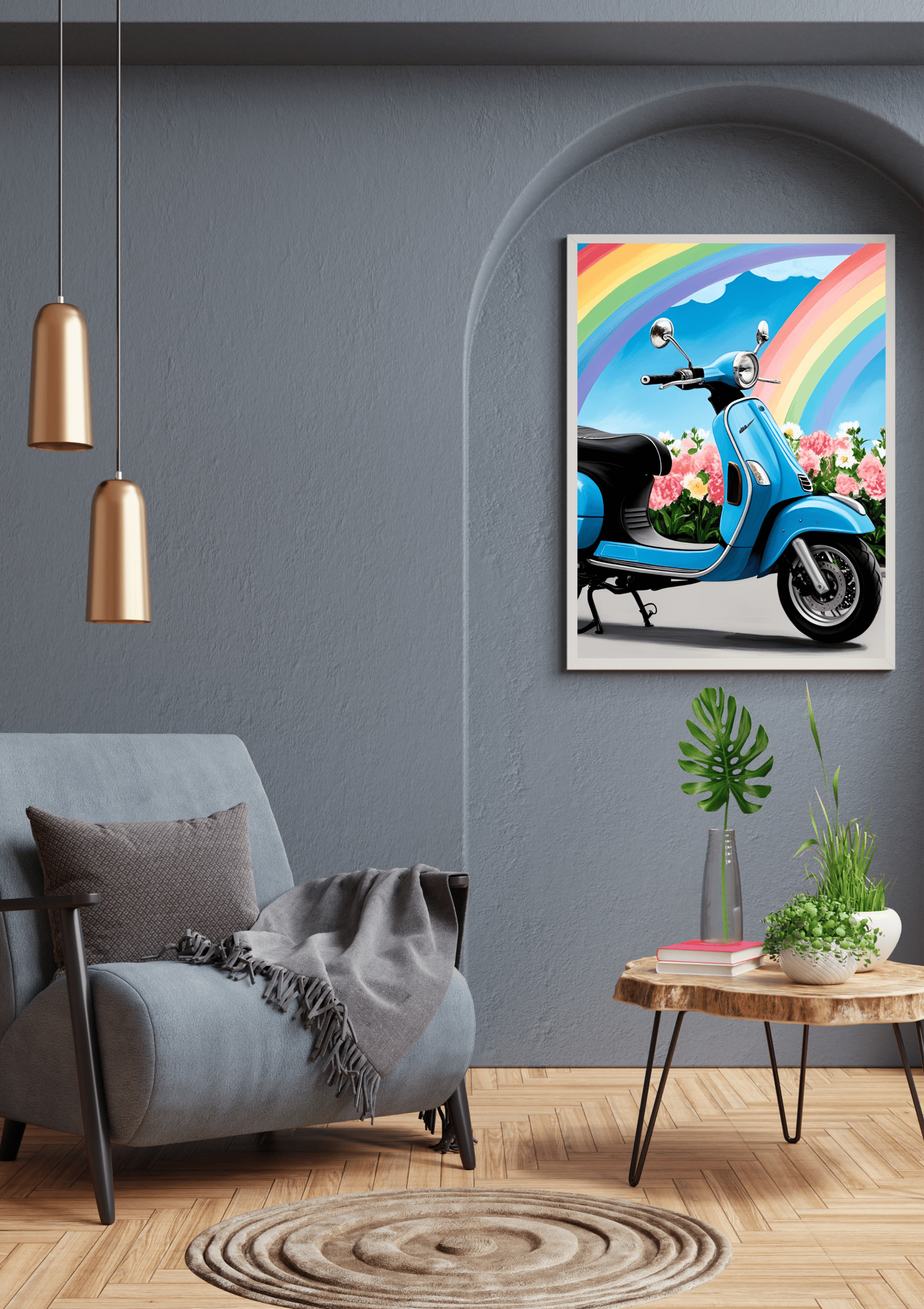 “Vintage Hues” evokes a sense of nostalgia. At the center where most viewers’ attention are heavily going towards, is a scooter with design elements reminiscent of an old model. What you’re seeing is indeed a vintage scooter rendered realistically with a backdrop giving a dreamlike atmosphere. The simplistic design of the background also adds to the feeling of simplicity and can be associated with old kid’s shows, tickling your brain even more to reminisce on the good old memories that you often wish you could go back to.
