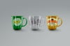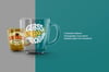 High-resolution glass mug mockup set with editable mug colors and isolated shadows for branding, packaging and product visualization.