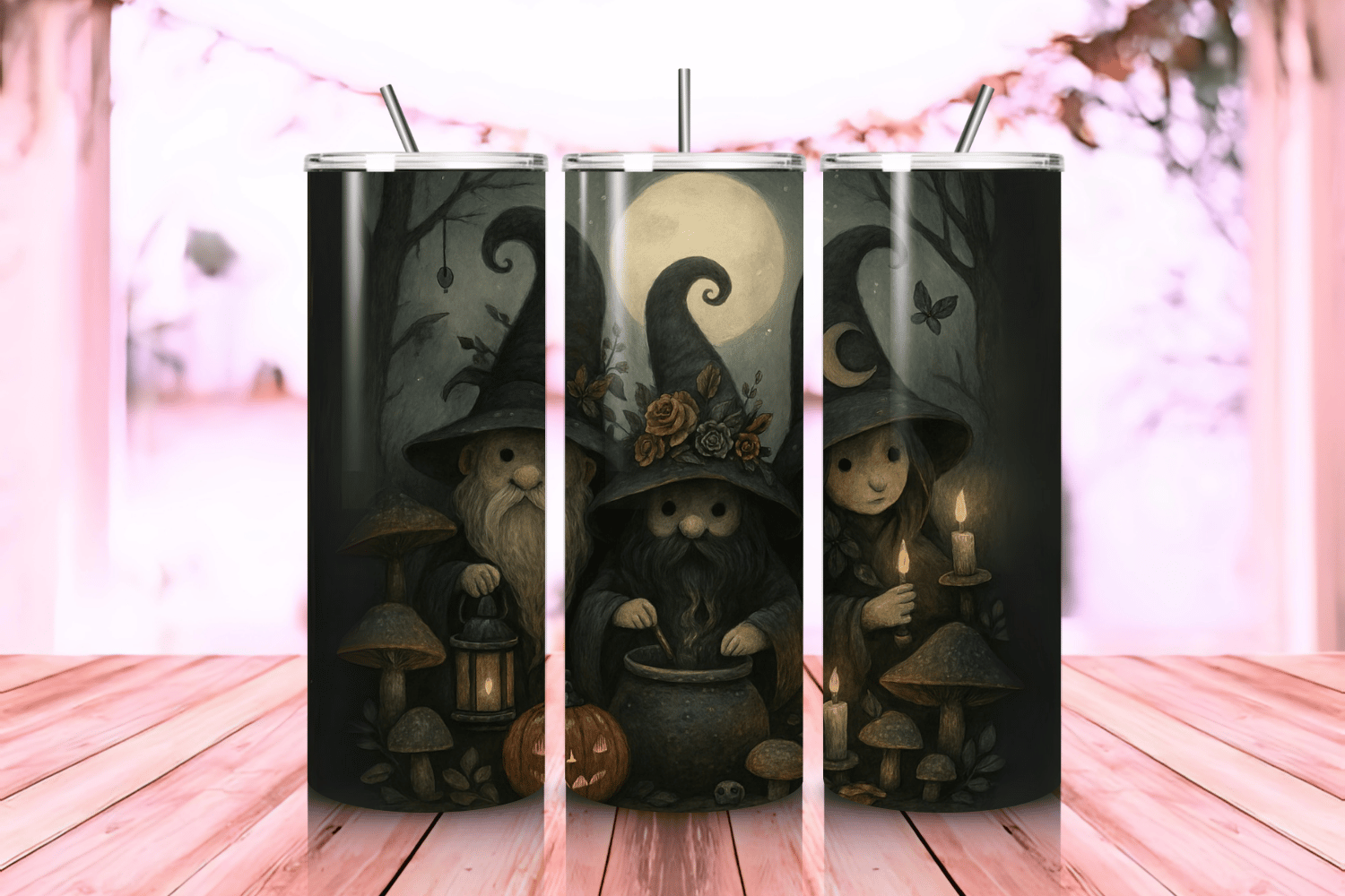 Witchy Halloween Gnome Tumbler Wrap PNG – 20oz Skinny Sublimation Design with Magical Gnome Illustration & Spooky Autumn Vibes – 300 DPI Instant Digital Download