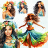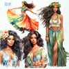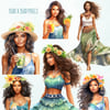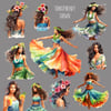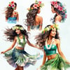 Hawaiian Girl PNG Clipart Bundle - Hawaiian tropical woman clipart collection, adorned with floral bouquets of exotic hibiscus and plumeria blooms. Perfect for an exotic holiday project or other summer vacation related project, planner or diary - watercolor tropical flowers and ocean lover girls are a great addition to it. If printed on a paper sheet, these clipart can be great addition to your handmade paper crafted project. Get this bundle now and start your sunny beach project now.