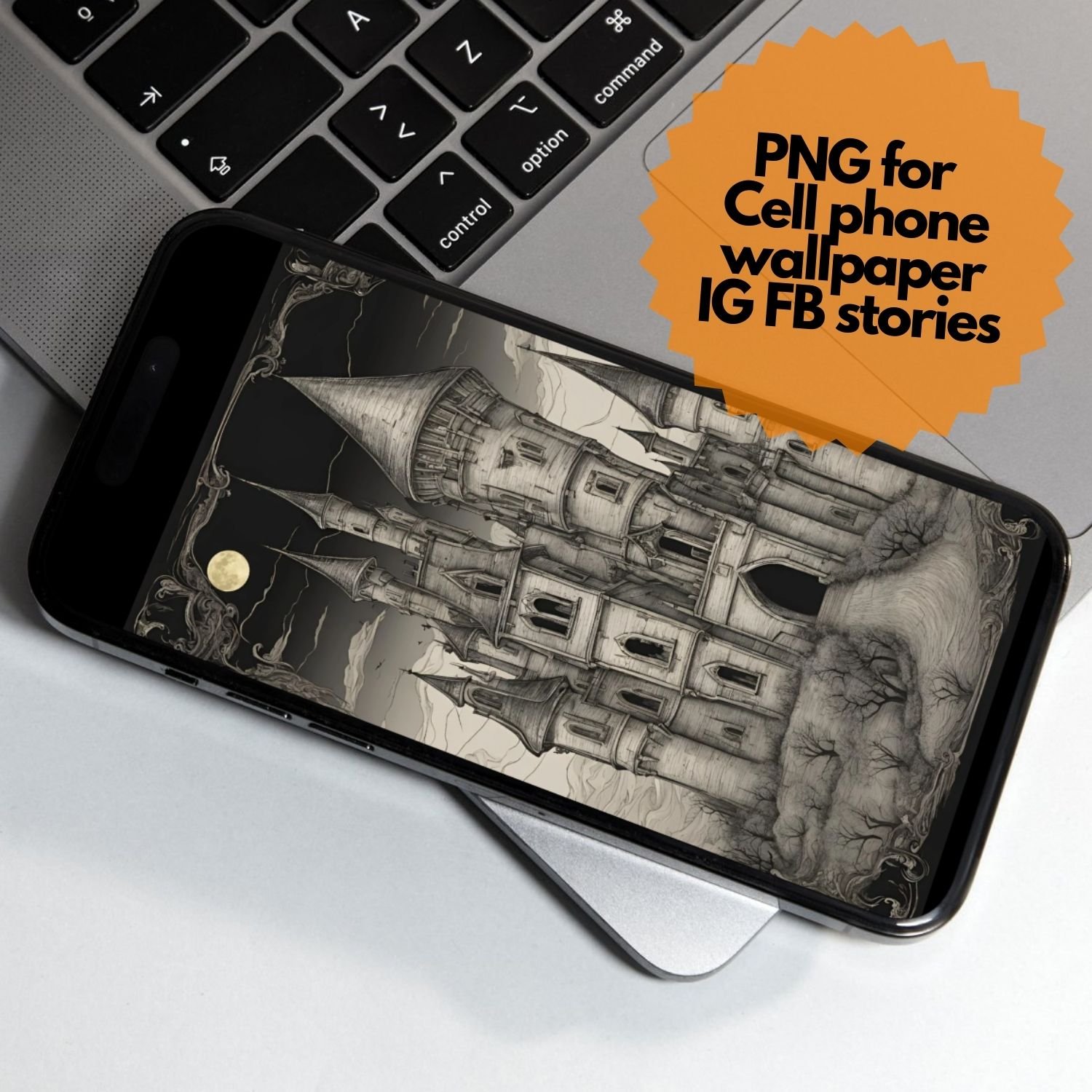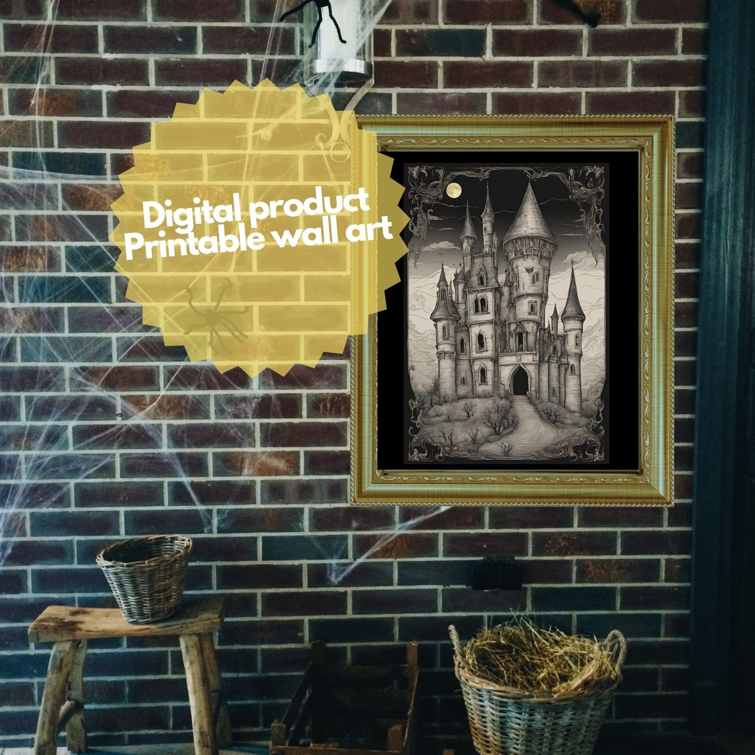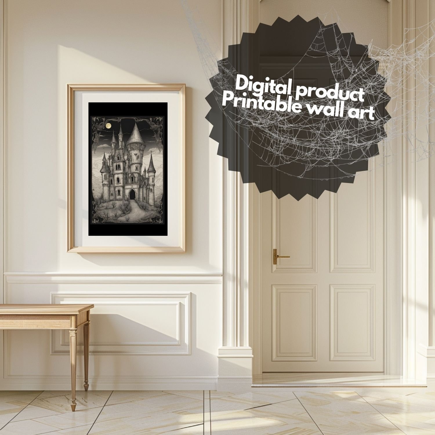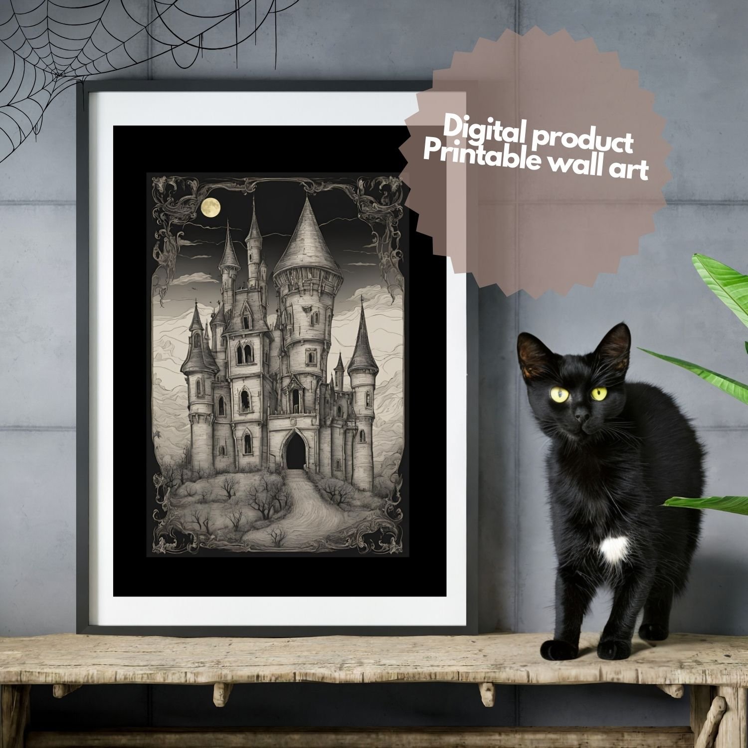 A digital file for printing; Creepy castle at halloween night. Printable decoration for party. Vintage wall art. Wallart printable for october party Vintage halloween party