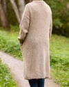 Tauko cardigan is a simple all stockinette stitch cardigan with drop shoulders and casual fit. It is worked from the top-down seamlessly starting from small back neck extensions that grow into a shawl collar that is worked simultaneously with the cardigan. The version here is long but the length can be easily modified.
