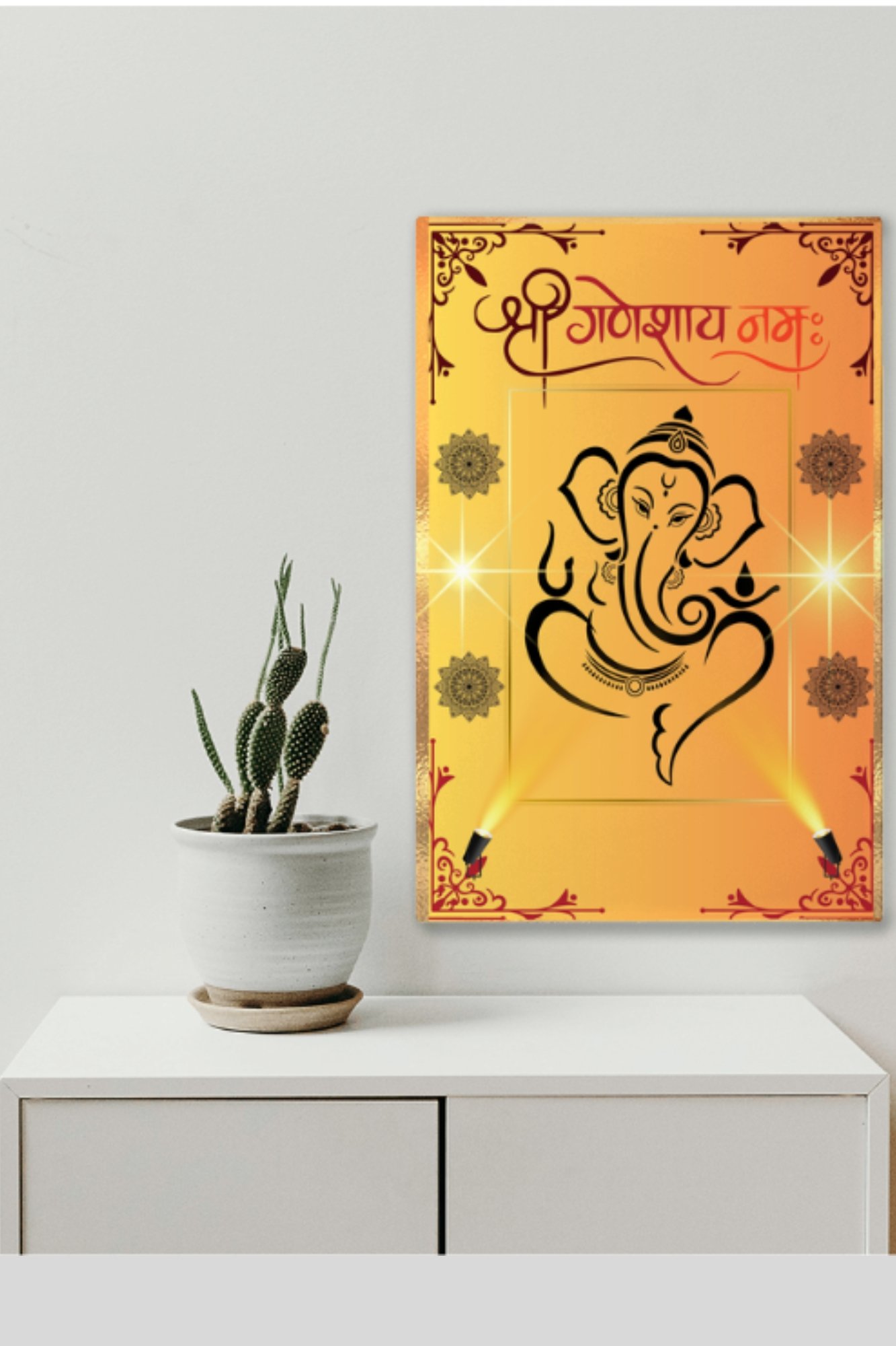This 8 x 12 wall art masterpiece celebrates the divine presence of Lord Ganesh, the revered deity of wisdom, prosperity, and remover of obstacles in Hindu mythology.