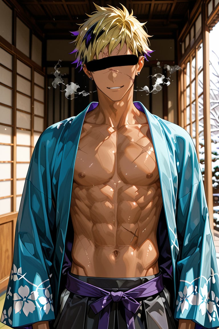 日本の正月をテーマに、着物を着用している男性を、キャラクターごとにお任せ作成しました。男らしいキャラクターの魅力を思い切って表現しました。
