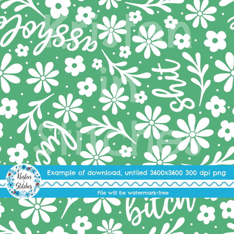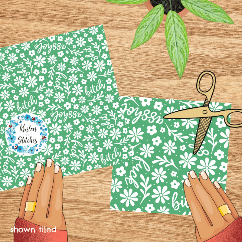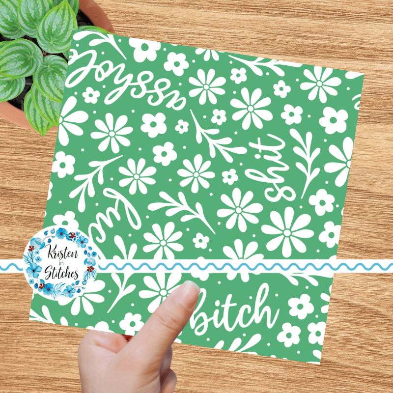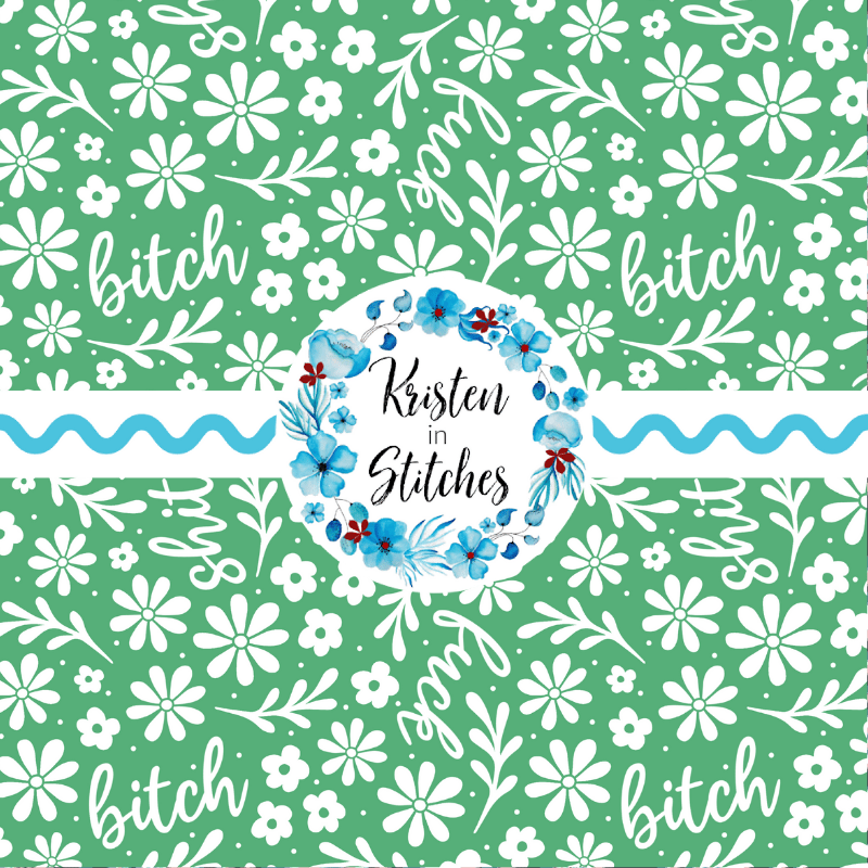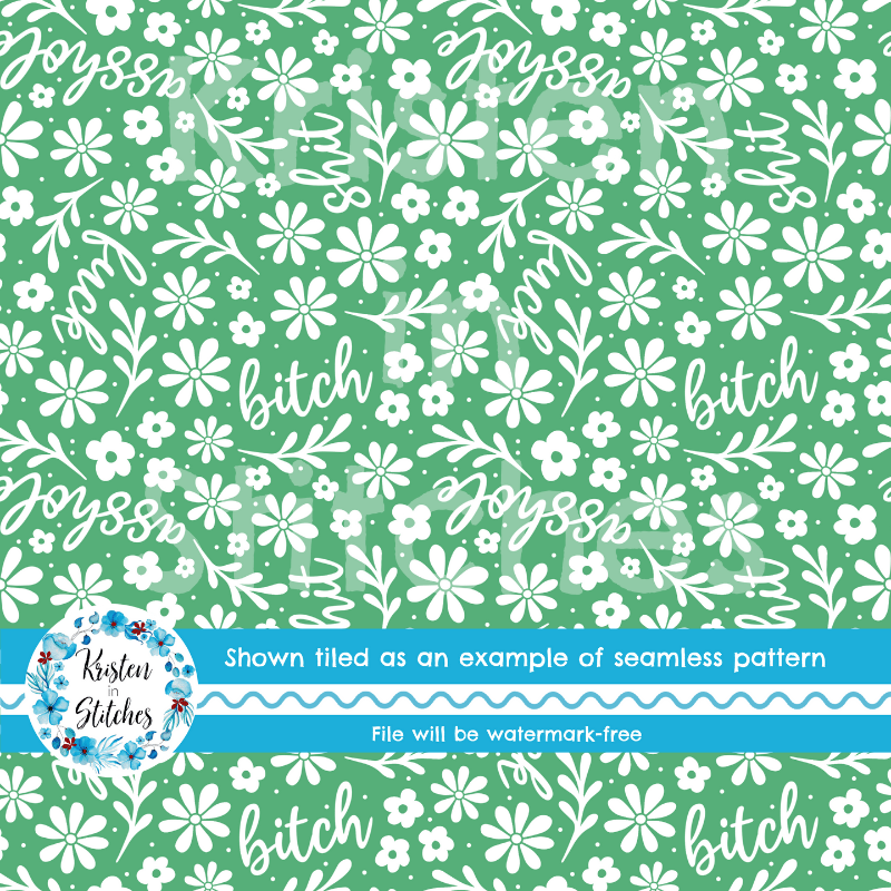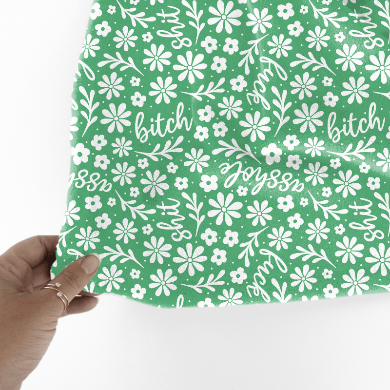 Subtle Sweary Floral Seamless Pattern, Swear Words Flowers in Green