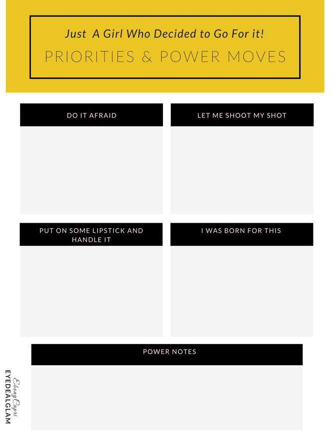 Do you feel like the recent years took a turn and you didn't get to carry out eveything you planned. It's ok, don't be troubled. You still have skin in the game and you can still make it happen. Use this chart to create your own list of things you want to pursue and make happen no matter what opposition may occur.